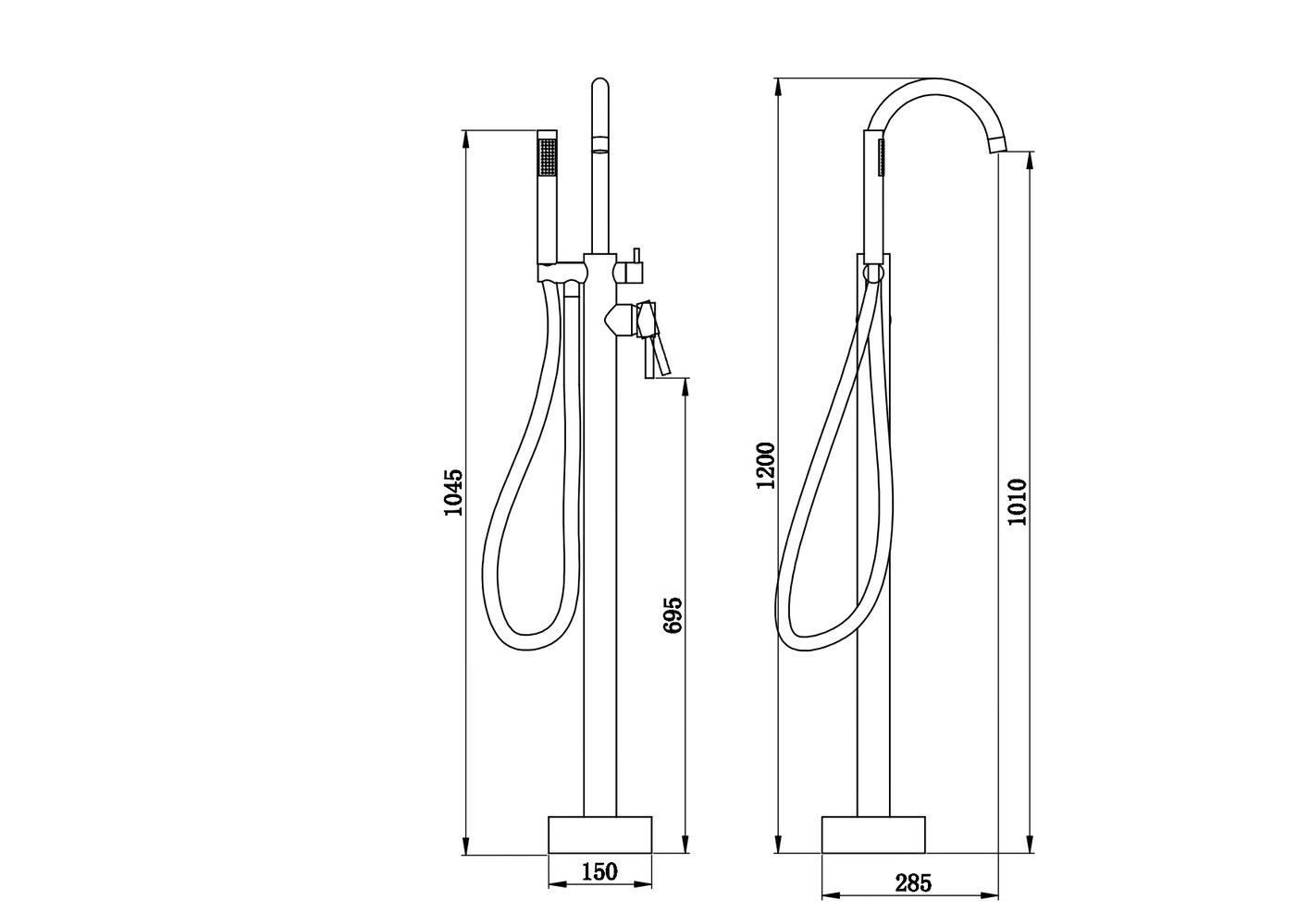 Смеситель для ванны напольный EvaGold Antares EG400072 с душевым гарнитуром, материал латунь, цвет золото.