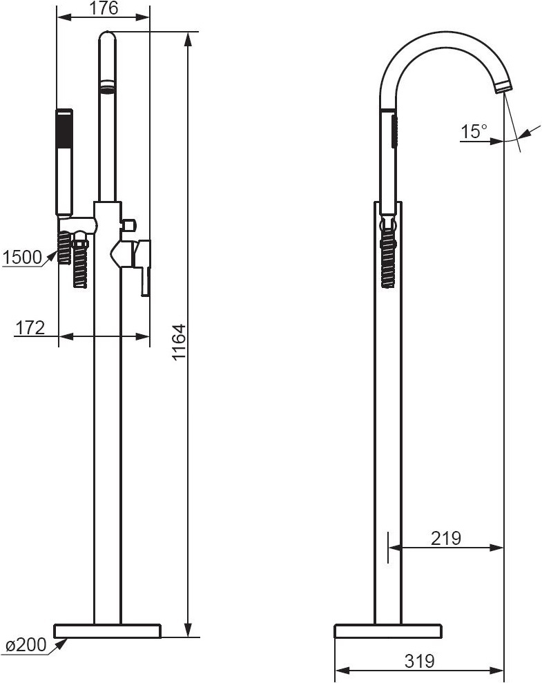 Смеситель для ванны отдельностоящий Damixa Scandinavian Pure 365000300 с душевым гарнитуром, материал латунь, цвет чёрный.
