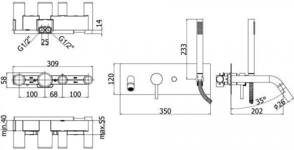 Характеристики смеситель для ванны Paffoni (LIG001NO)