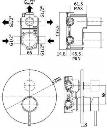 Смеситель для ванны Paffoni Light LIG019CR со скрытой частью, 3 положения +3 комбинации, материал латунь, цвет хром.