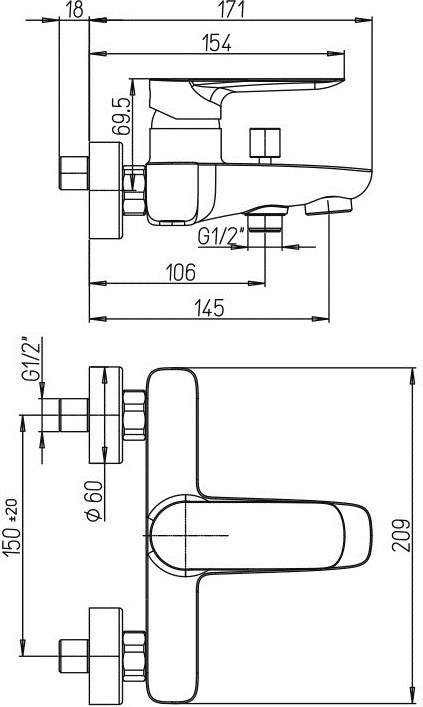 Характеристики смеситель для ванны Paini (09CR111)