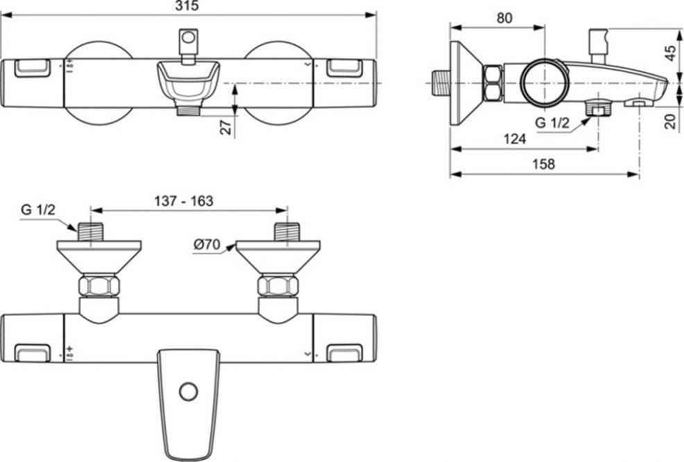 Смеситель для ванны с термостатом Ideal Standard Ceratherm T25 A7206AA, материал - латунь, цвет - хром.