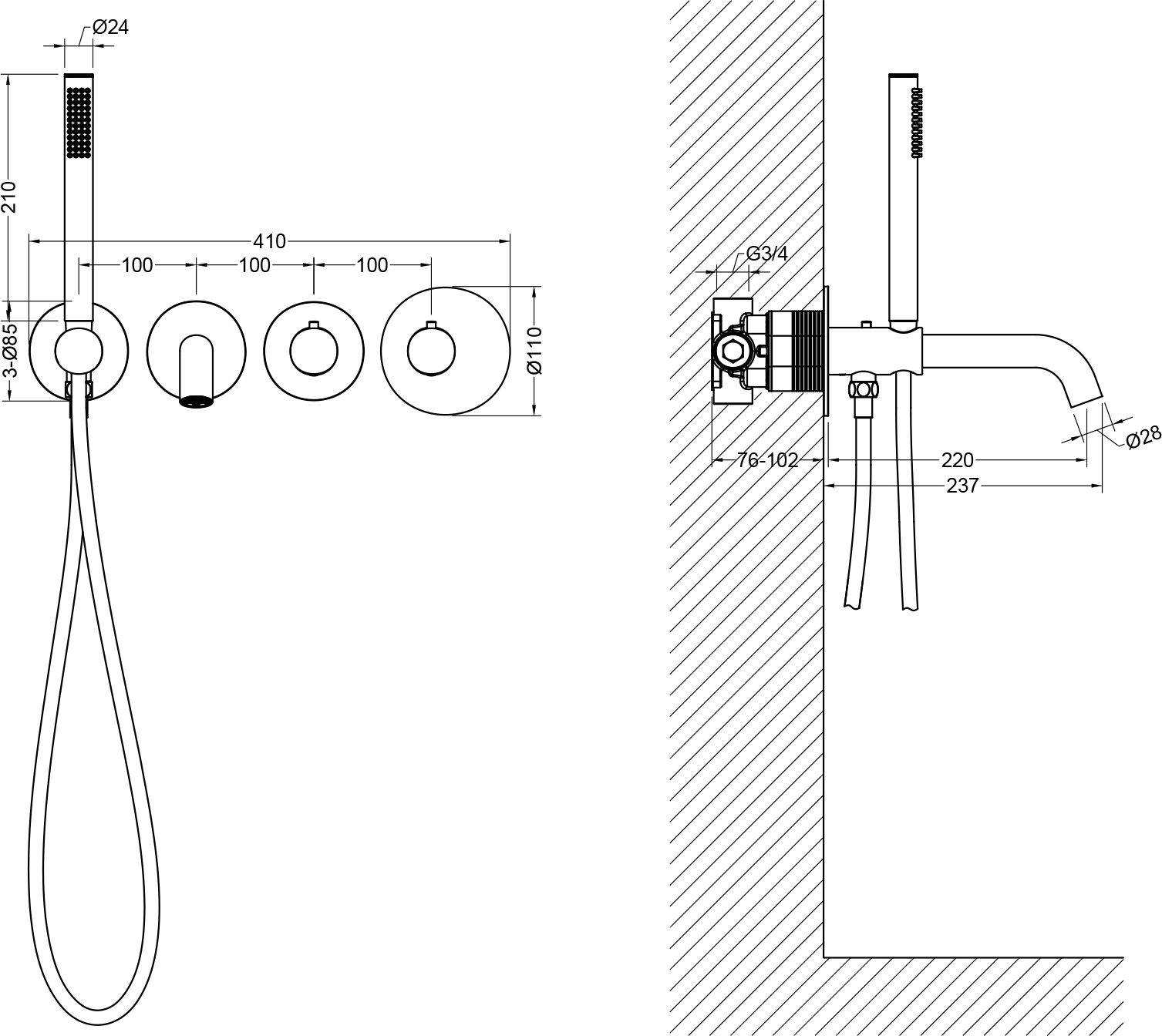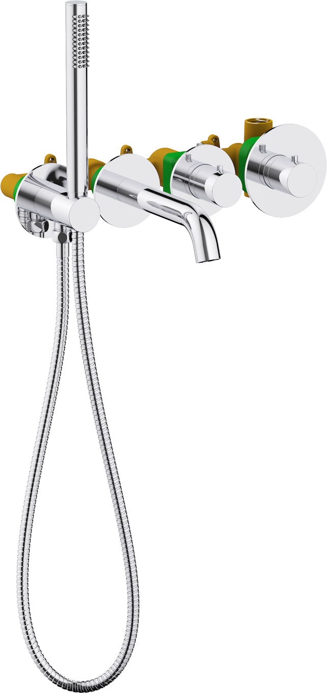 Встраиваемый смеситель с термостатом Timo Saona 2324 предназначен для монтажа в твердой или полой стене. Уникальная дизайнерская модель с раздельными горизонтальными блоками создаст неповторимый современный интерьер в ванной комнате. Основные преимущества встроенного смесителя: коммуникации, крепления и механизмы спрятаны в стену и видны только декоративные элементы, установить встроенный смеситель можно в любом месте. Термостатический картридж поддерживает стабильную температуру воды, обеспечивая максимально комфортные условия для принятия водных процедур. Стильная лейка-карандаш удобна в использовании и фиксируется на держателе с подключением шланга для душа. Регулировка температуры и напора воды осуществляется джойстиком справа. Переключение потока воды с излива на ручную лейку осуществляется поворотом ручки дивертора.