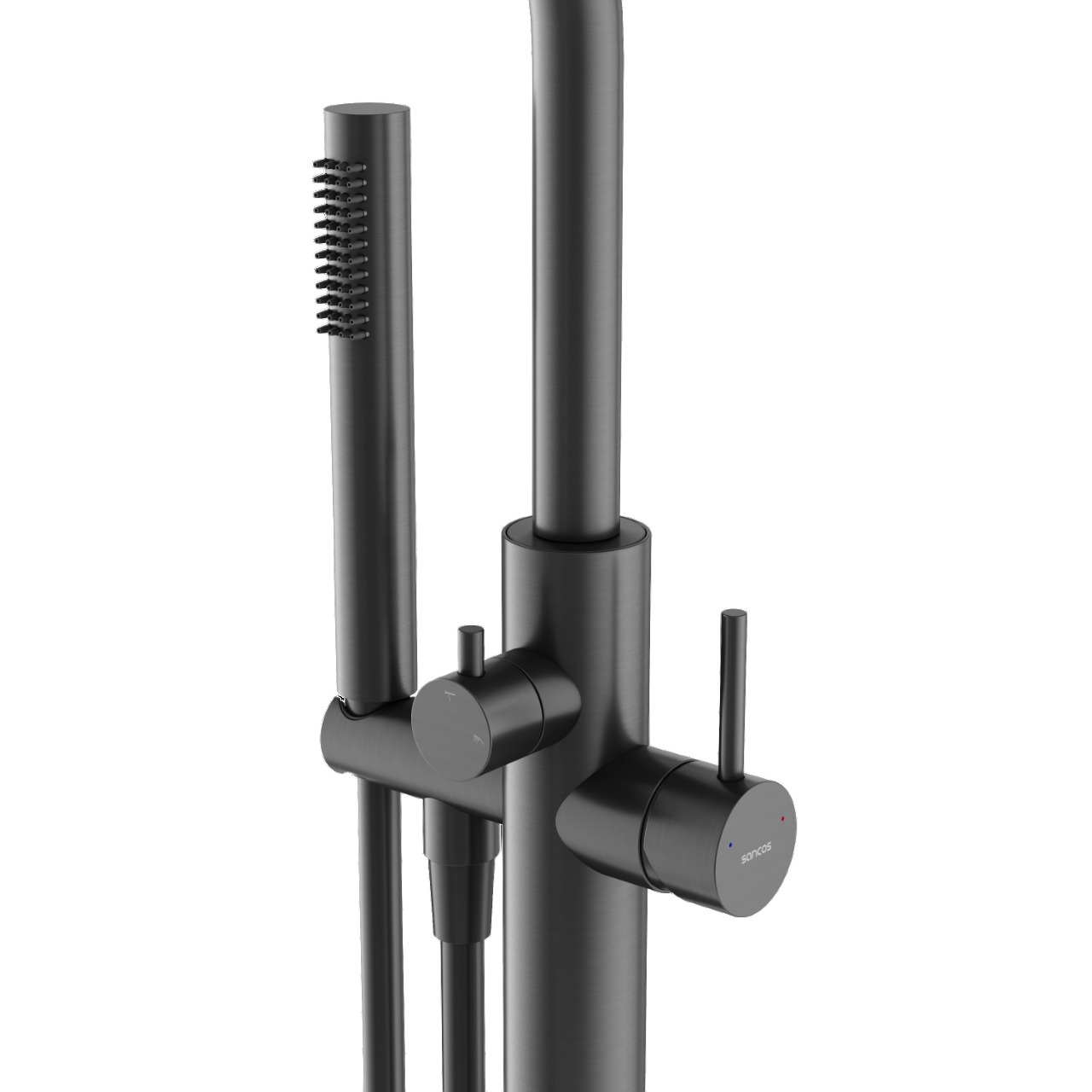 Смеситель для ванны Sancos Etna SC9009GG с душевым гарнитуром, количество режимов душевой лейки - 1, длина душевого шланга - 125 см, поворотный излив, материал - латунь, цвет - вороненая сталь.