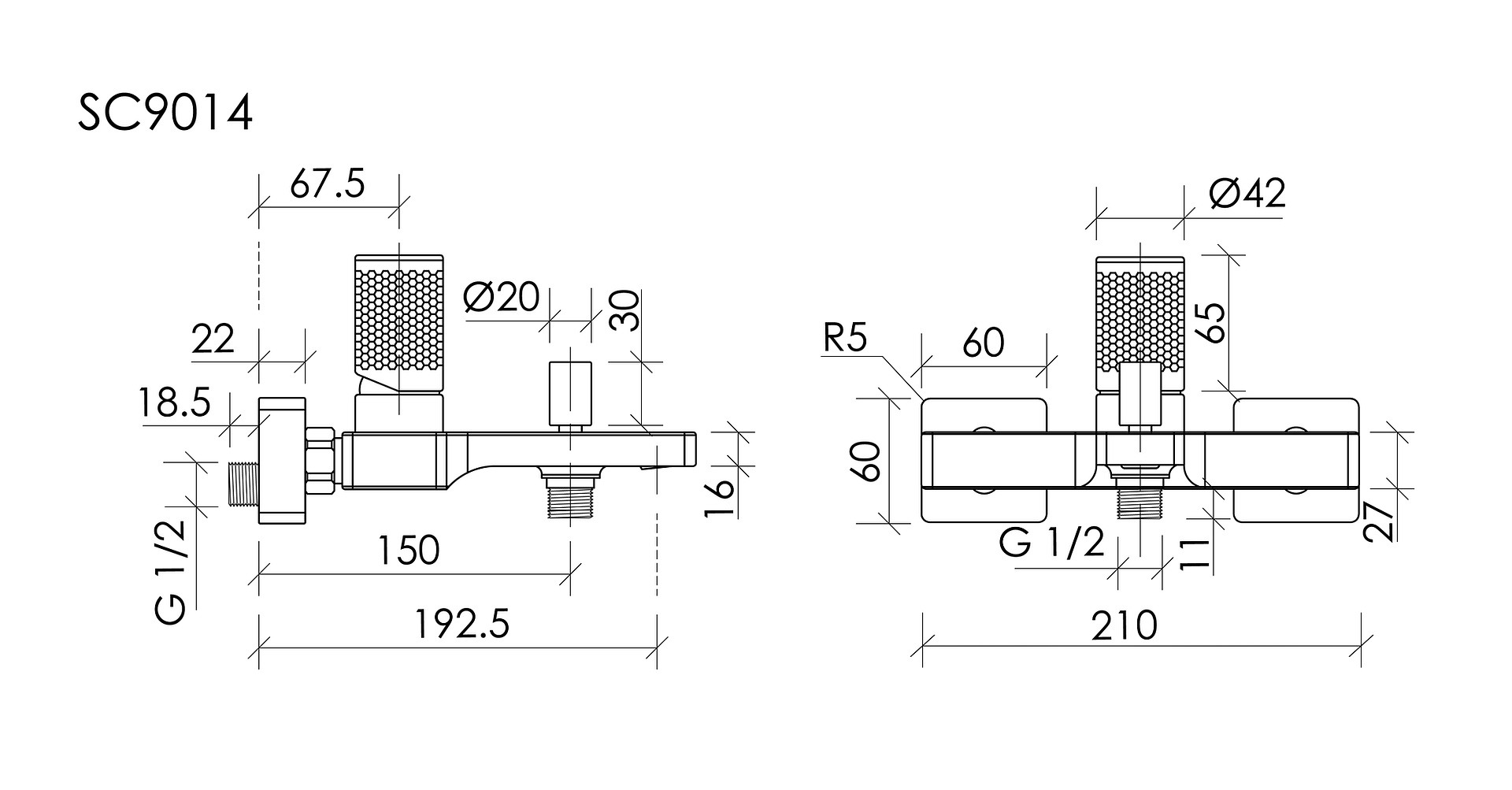 - Смеситель для ванны и душа с рифленой ручкой управления