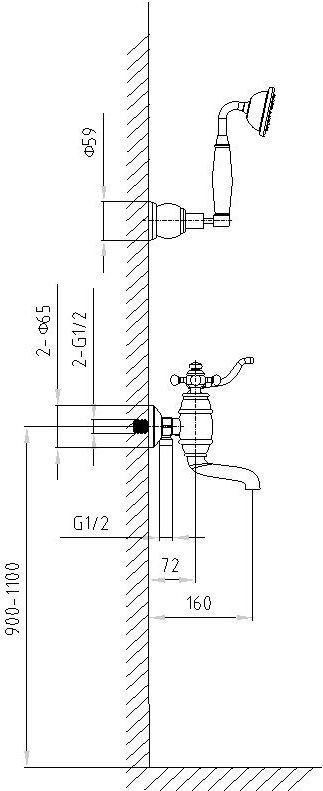 Смеситель для ванны Timo Lina 7034/02Y, с душевым гарнитуром и поворотным изливом, материал - латунь, цвет - антик.