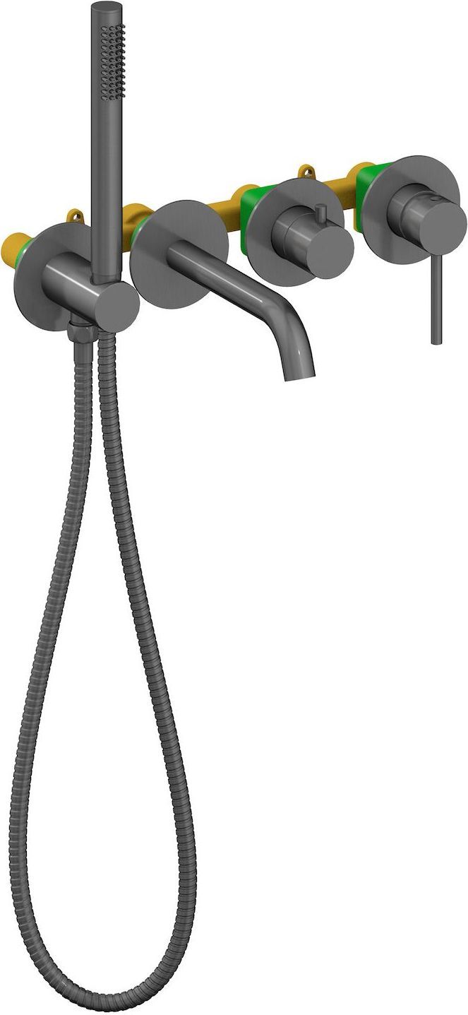 Смеситель для ванны Timo Saona 2314/18YSM с душевым гарнитуром, материал латунь, цвет черное золото.