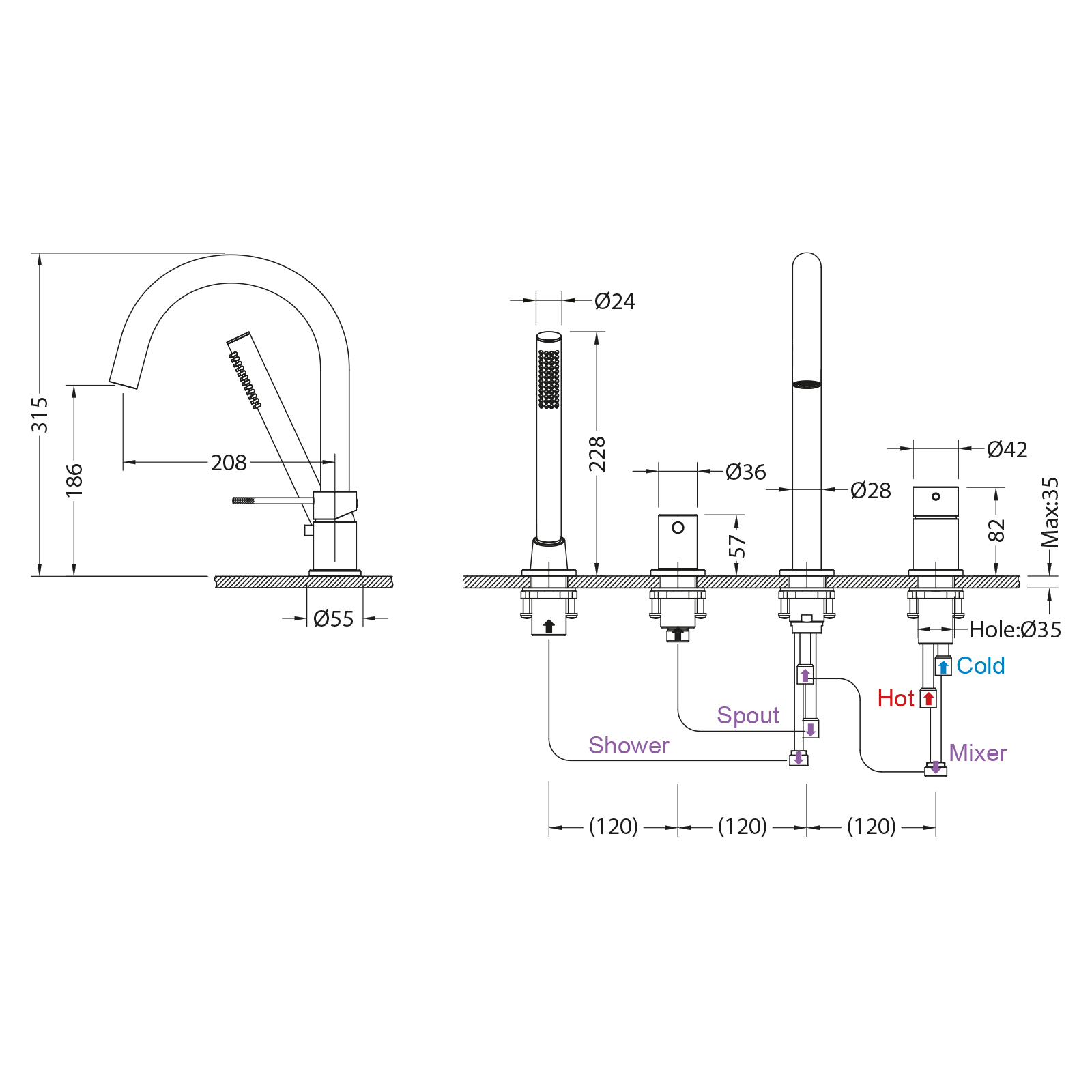 - Тип дивертора: Дивертор с керамическими пластинами
