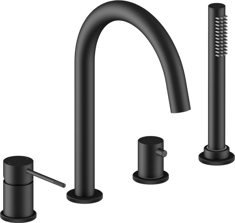 Смеситель для ванны Timo Saona 2320/03Y, на 4 отверстия, с душевым гарнитуром, материал - латунь, цвет - черный матовый.