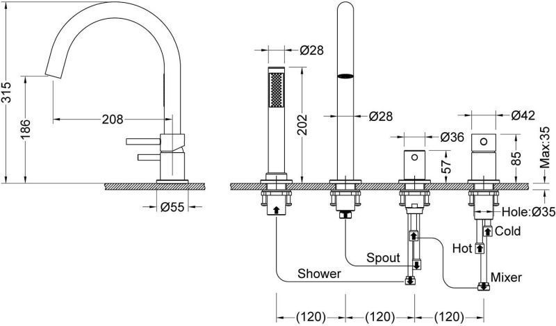 - Смеситель врезной, латунь класса А