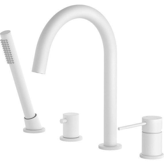 Смеситель для ванны Timo Saona 2320/16Y, на 4 отверстия, с душевым гарнитуром, материал - латунь, цвет - белый матовый.