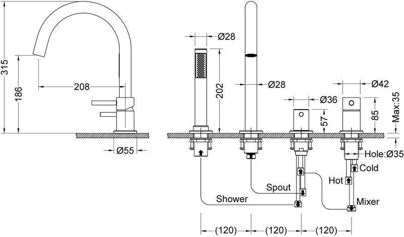 - Излив врезной (латунный)