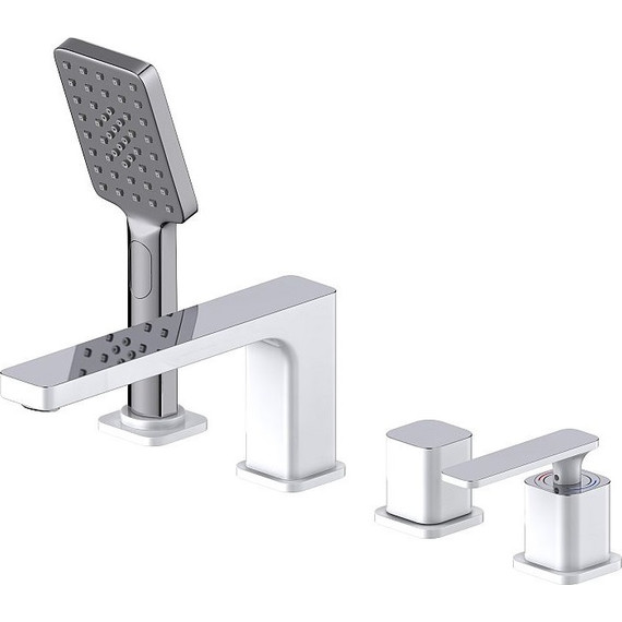 Смеситель для ванны Timo Torne 4330/00-16Y, на 4 отверстия, с душевым гарнитуром, материал - латунь, цвет - хром/белый.