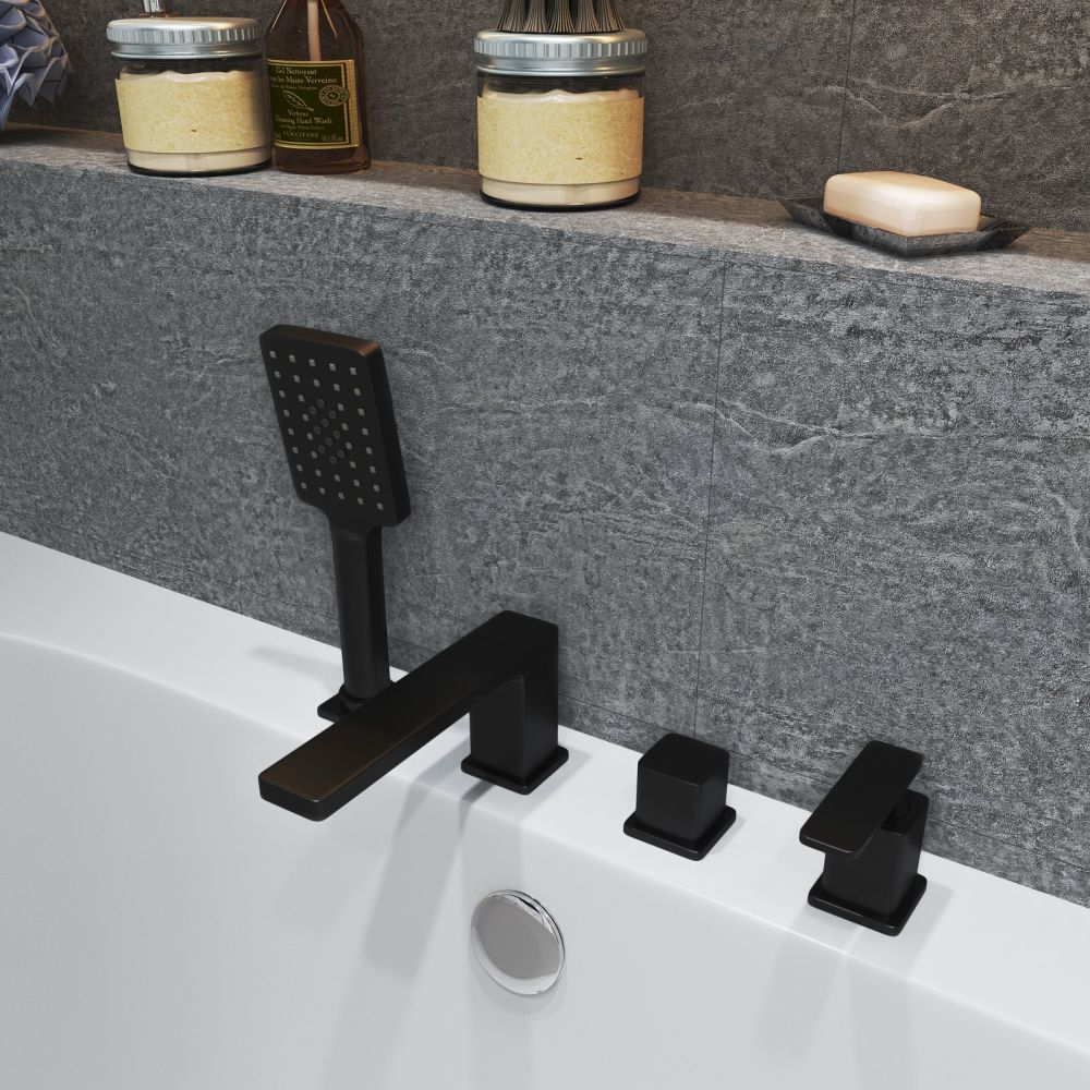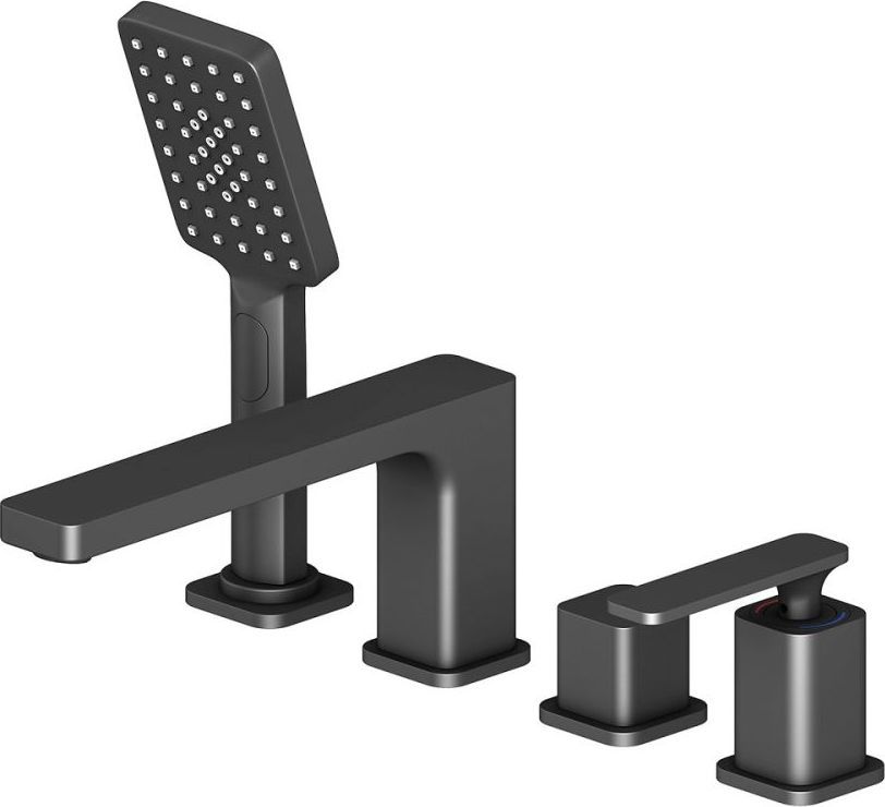 Смеситель для ванны Timo Torne 4330/03Y, на 4 отверстия, с душевым гарнитуром, материал - латунь, цвет - черный матовый.