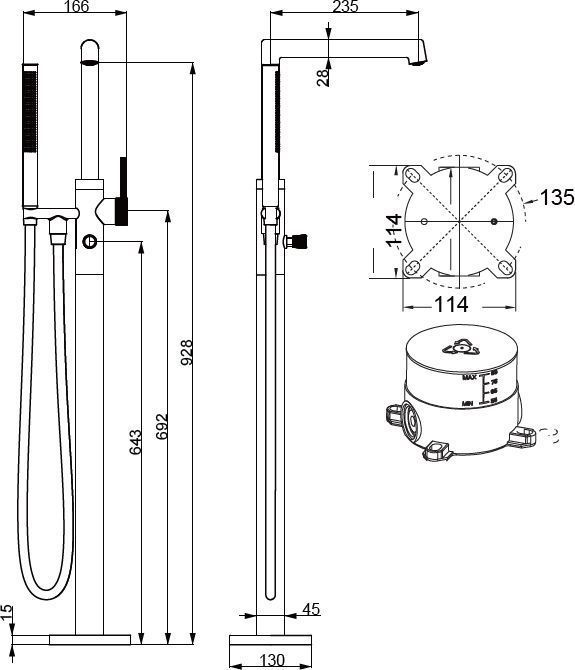 Характеристики напольный смеситель Vincea (VTF-2RMCH)