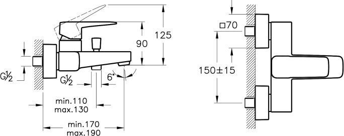 - Длина излива: мин. 170 - макс. 190 мм