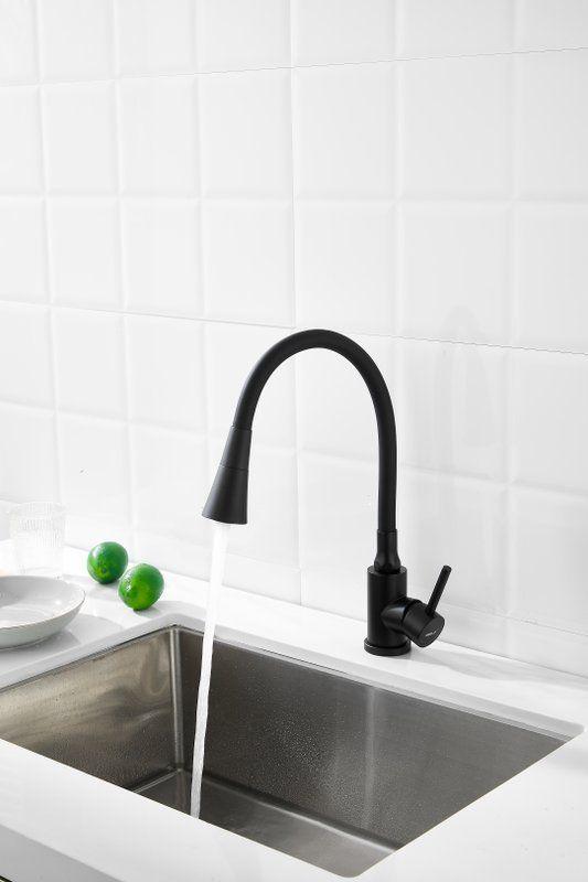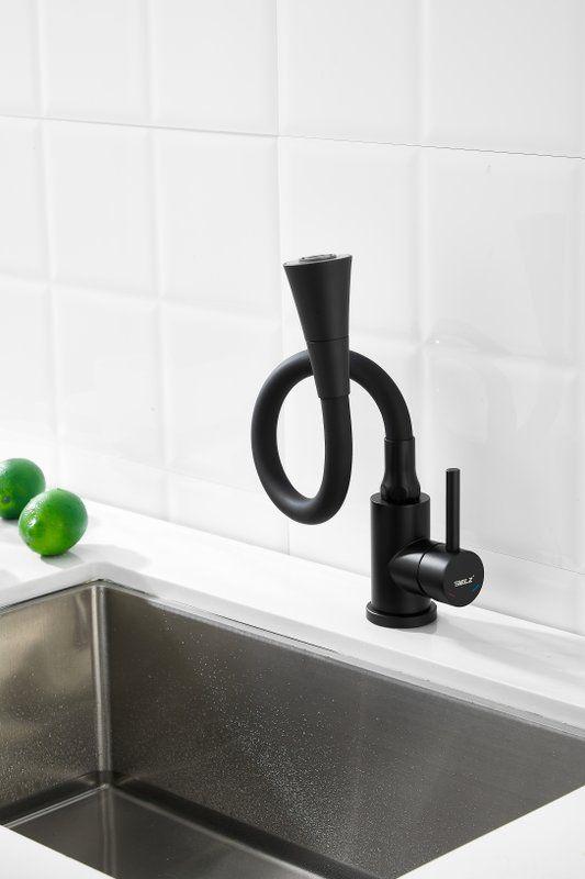 Смесители для кухни Belz B74810-7 с гибким изливом, материал нержавеющая сталь/силикон, цвет чёрный.