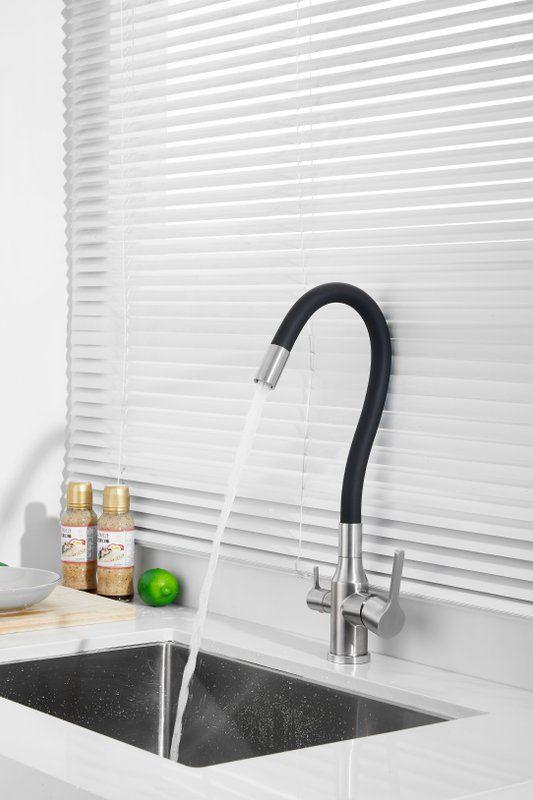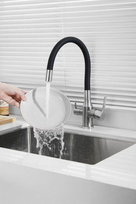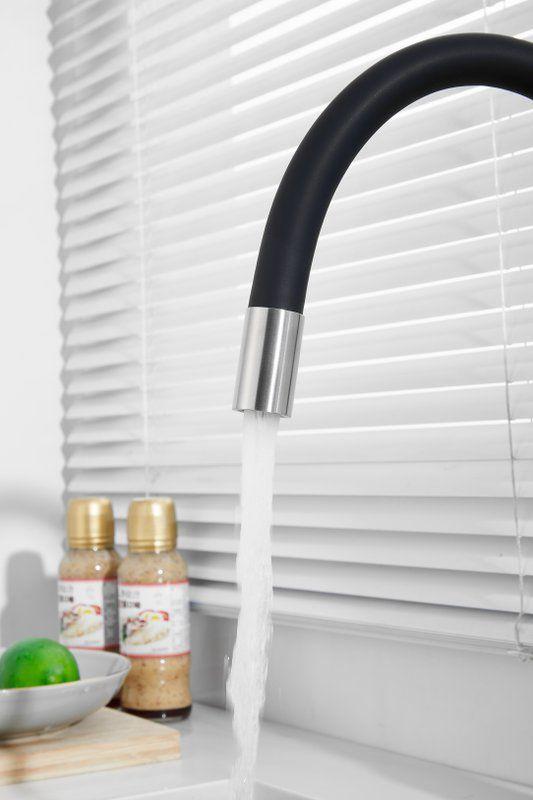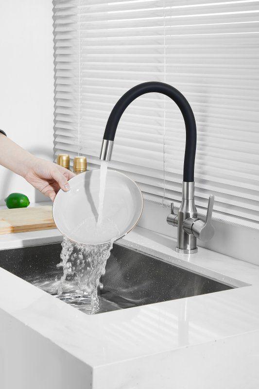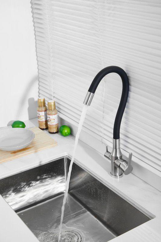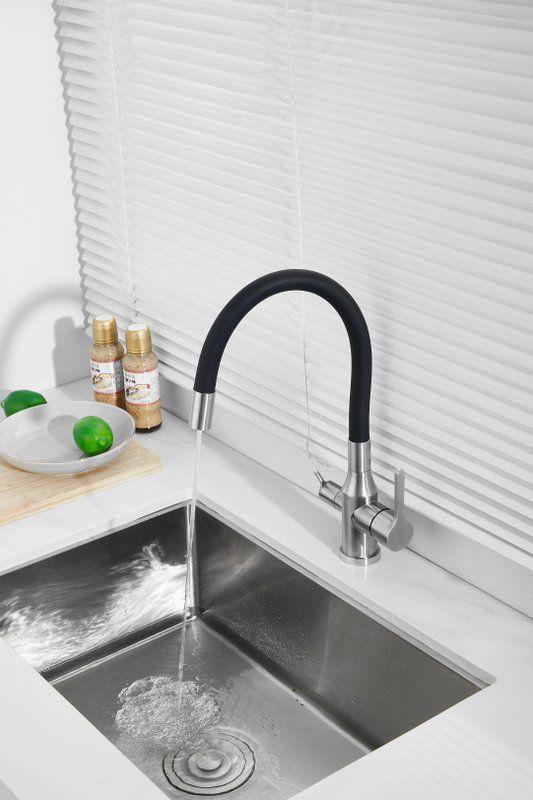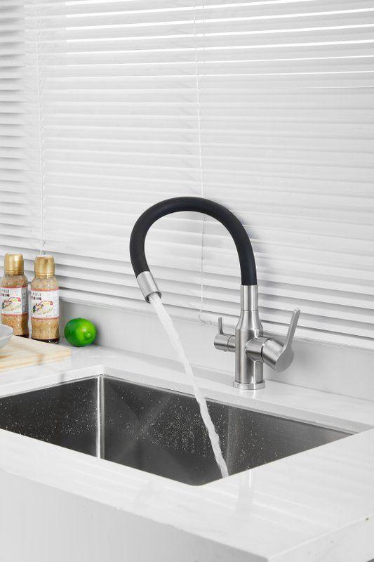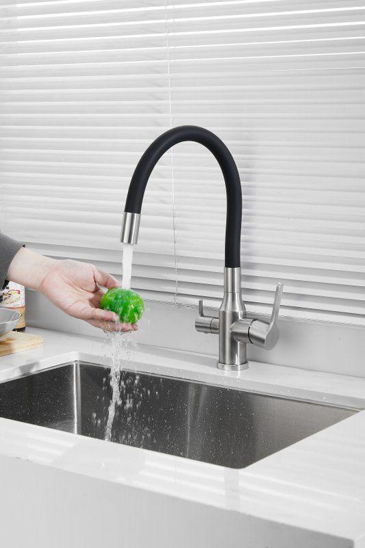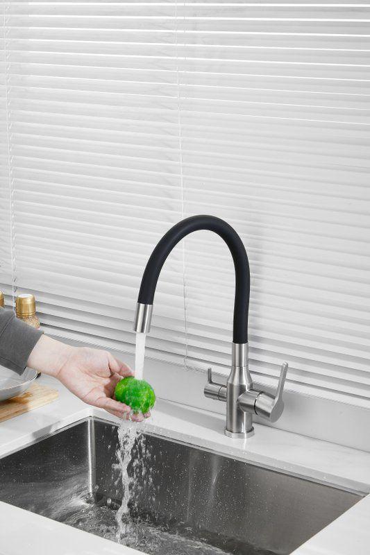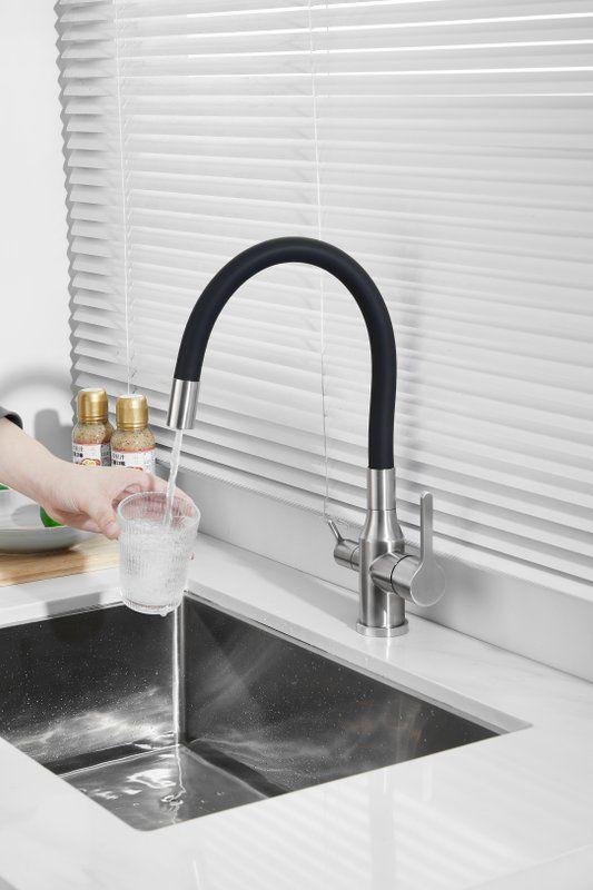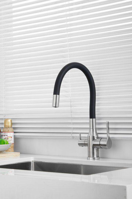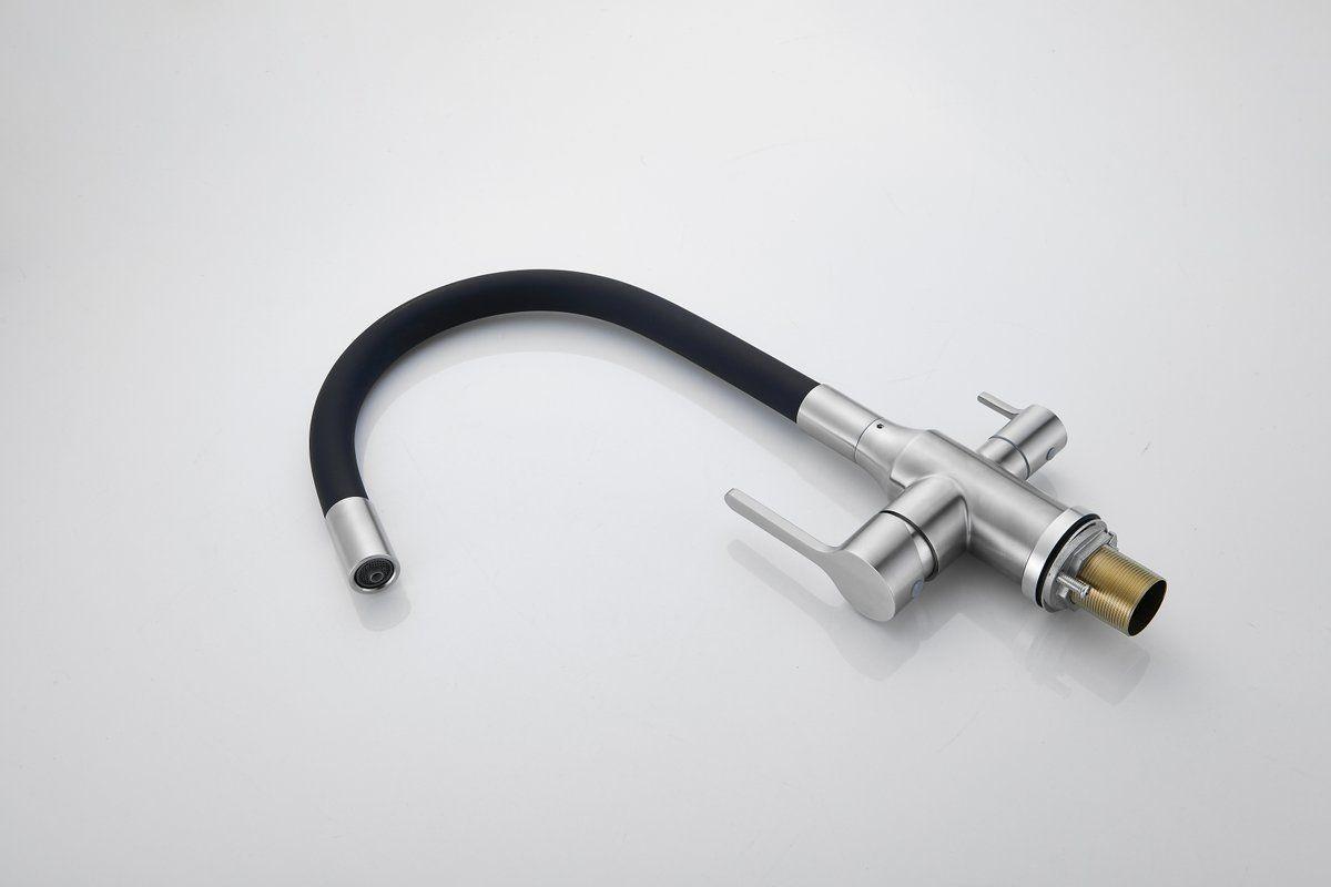 Смесители для кухни Belz B76814-1 с гибким изливом и подключением фильтра, материал нержавеющая сталь/силикон, цвет хром/чёрный.
