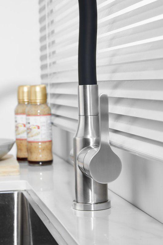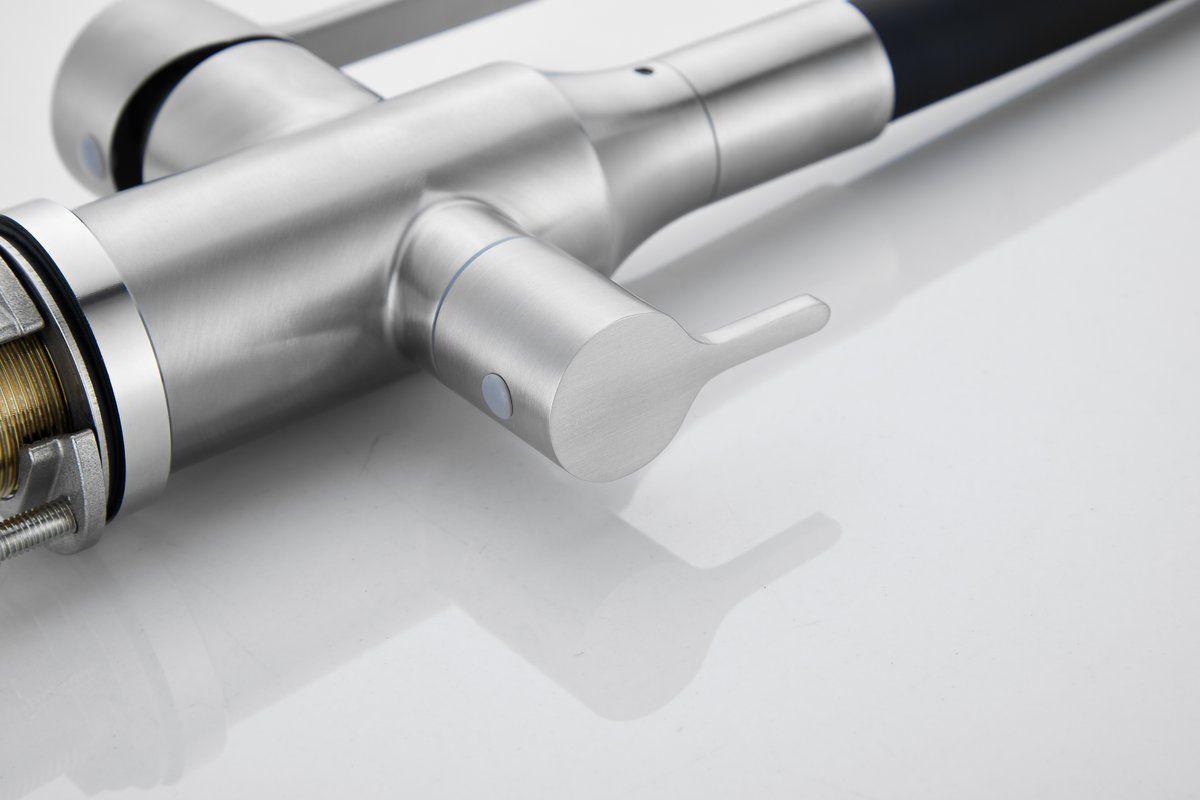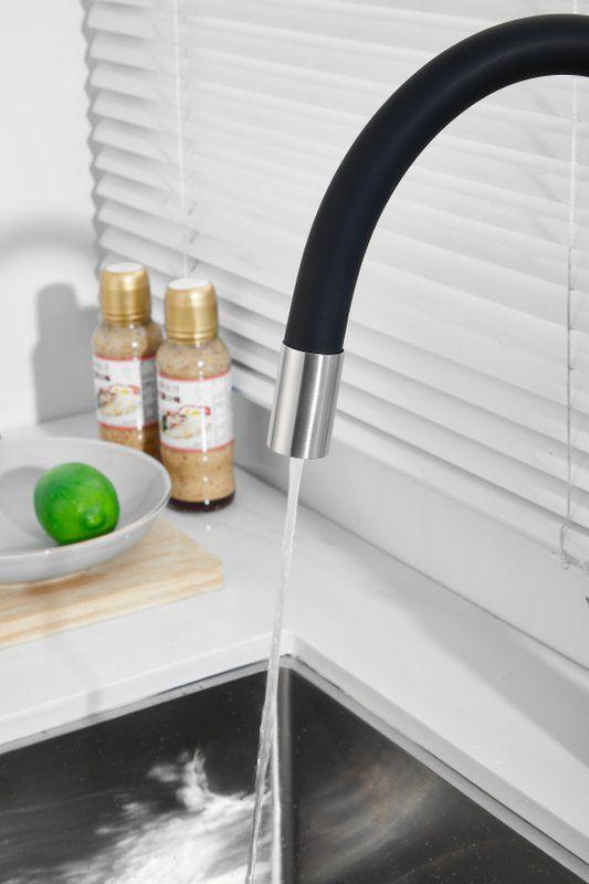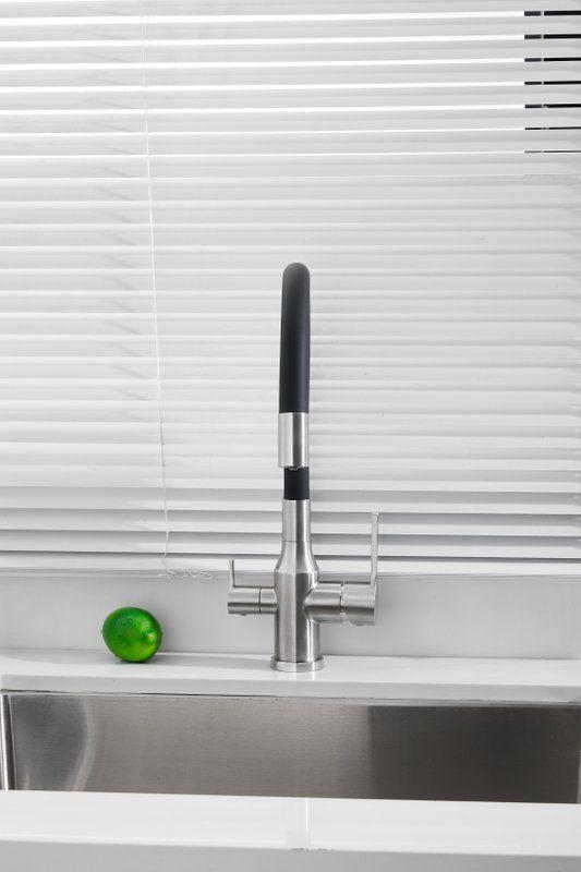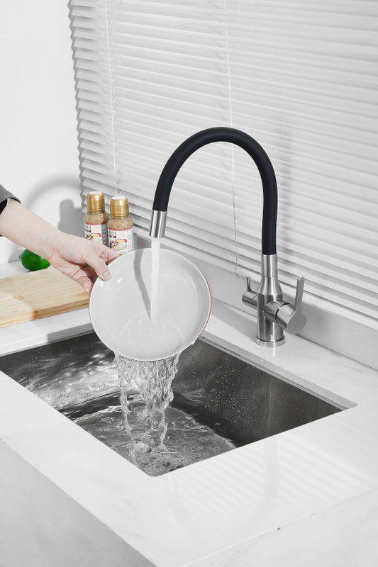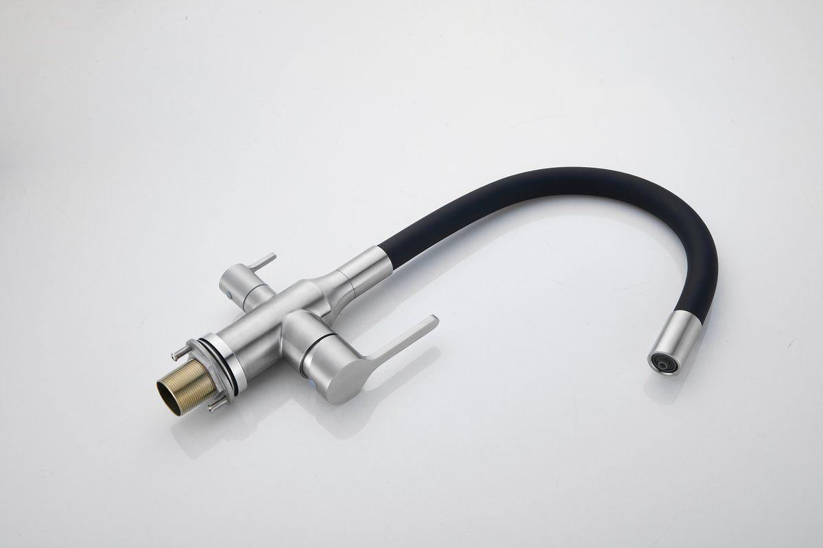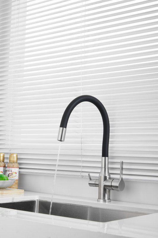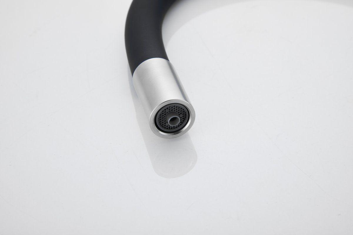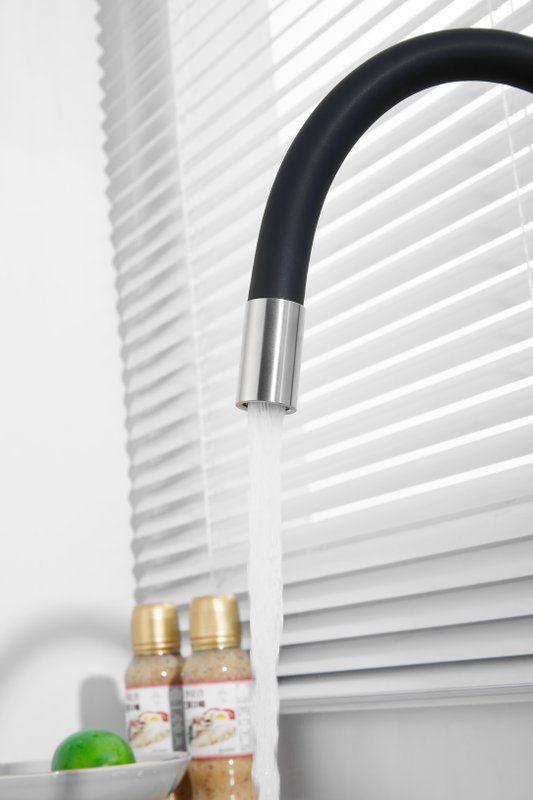 Смесители для кухни Belz B76814-1 с гибким изливом и подключением фильтра, материал нержавеющая сталь/силикон, цвет хром/чёрный.