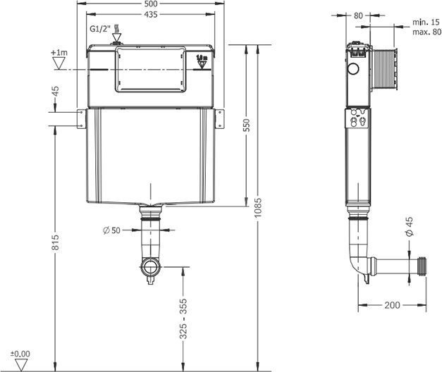 Смывной бачок скрытого монтажа Artceram 700.100. Кнопка смыва приобретается отдельно.