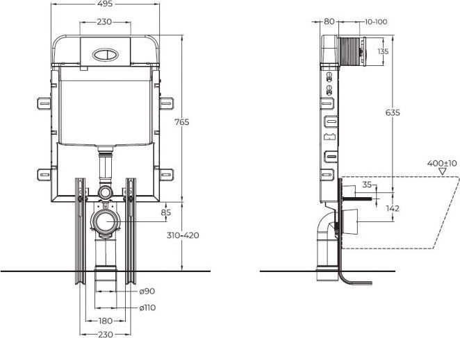 - Бачок скрытого монтажа с заводской настройкой системы двойного слива 3/6 л (регулируемая настройка 3/4,5 л)