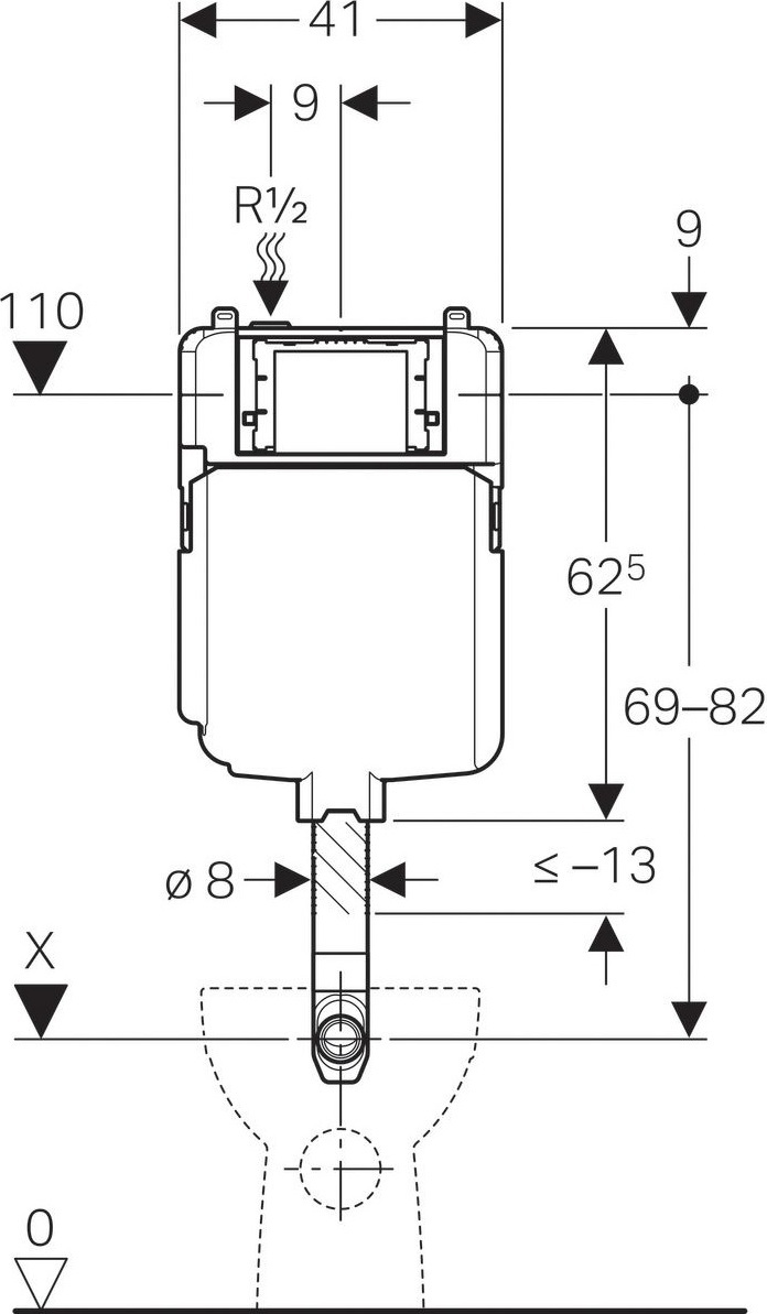 - Смывной бачок скрытого монтажа для смывной клавиши фронтальной установки, с противоконденсатной