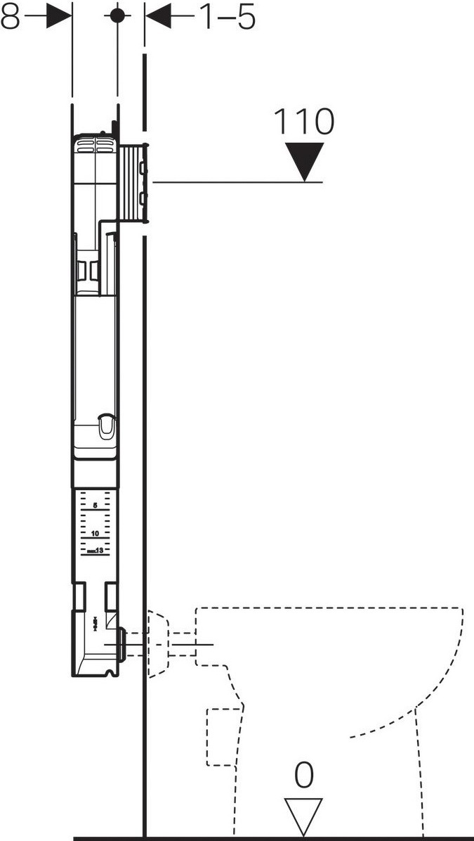- Большой объем воды для смыва, диапазон настройки 4,5 / 6 / 7,5 л
