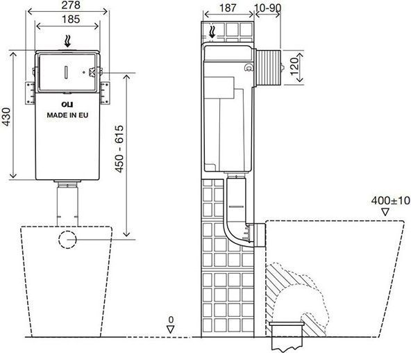- Толщина бачка - 187 мм