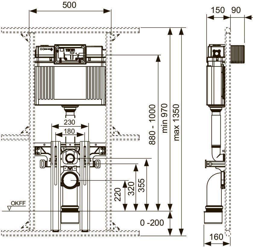 Смывной бачок скрытого монтажа TECE Uni 2.0 9041306 с кронштейнами для подвесного унитаза.