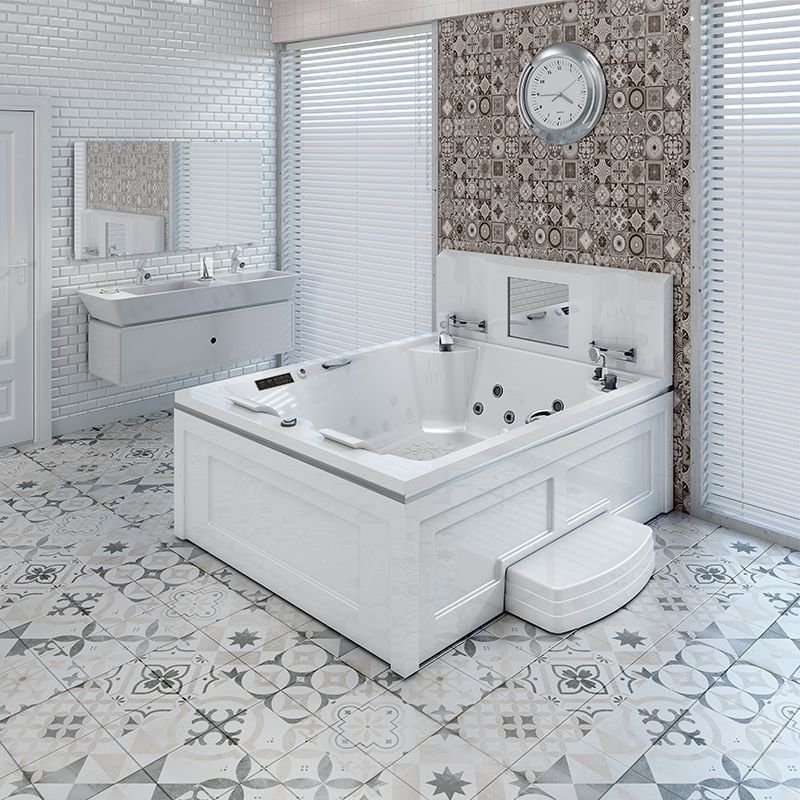 Спа бассейн Радомир Rimini 1900х1500х690 мм, фронтальная панель и 2 торцевые панели - декоративная террасная доска, цвет белый.