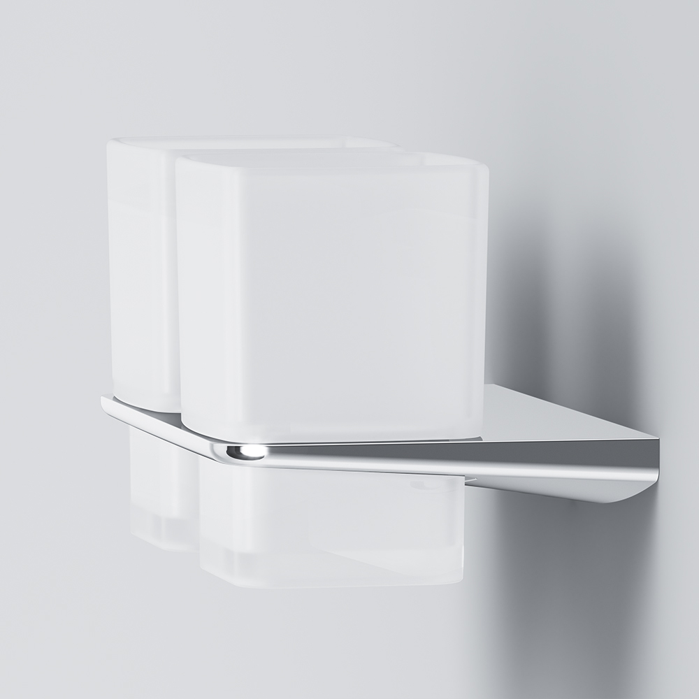 Двойной стакан для зубных щеток AM.PM Inspire 2.0 A50A343400 с настенным держателем, материал латунь/стекло, цвет хром.