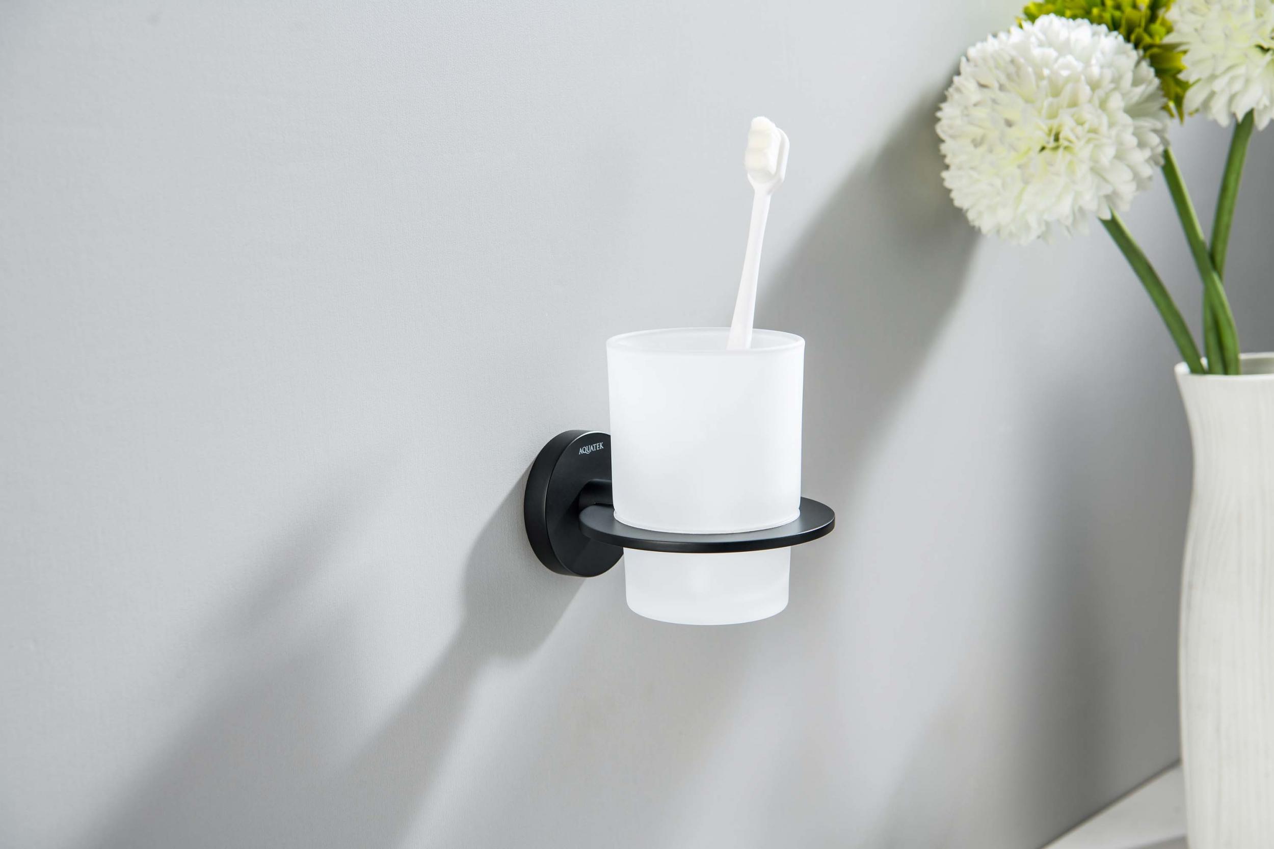 Стакан для зубных щеток Aquatek Оберон AQ4204MB, цвет чёрный матовый