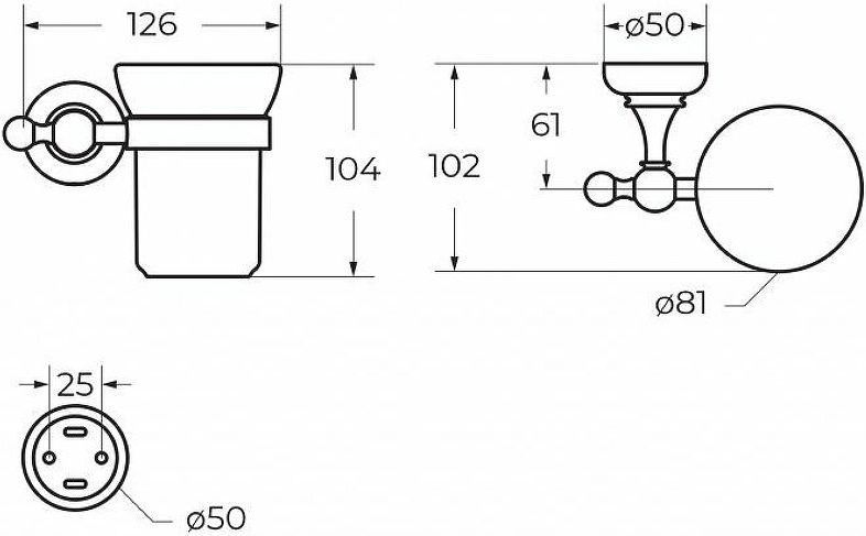 Стакан для зубных щеток Cezares APHRODITE-TUMS-02-M с настенным держателем, материал латунь/керамика, цвет бронза.