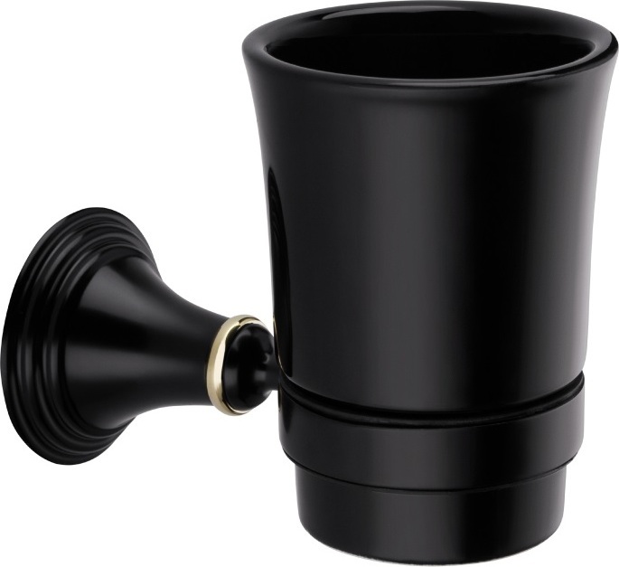 Стакан для зубных щеток Fixsen Luksor, керамика, с настенным держателем, материал латунь, цвет чёрный.