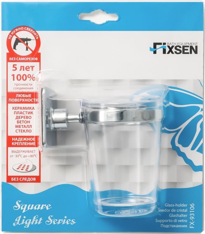 Стакан для зубных щеток Fixsen Square с настенным держателем, материал латунь/пластик, цвет хром.