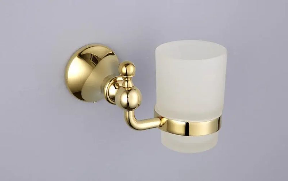 Стакан для зубных щеток Gappo G1406 с настенным держателем, материал металл/стекло, цвет золото.
