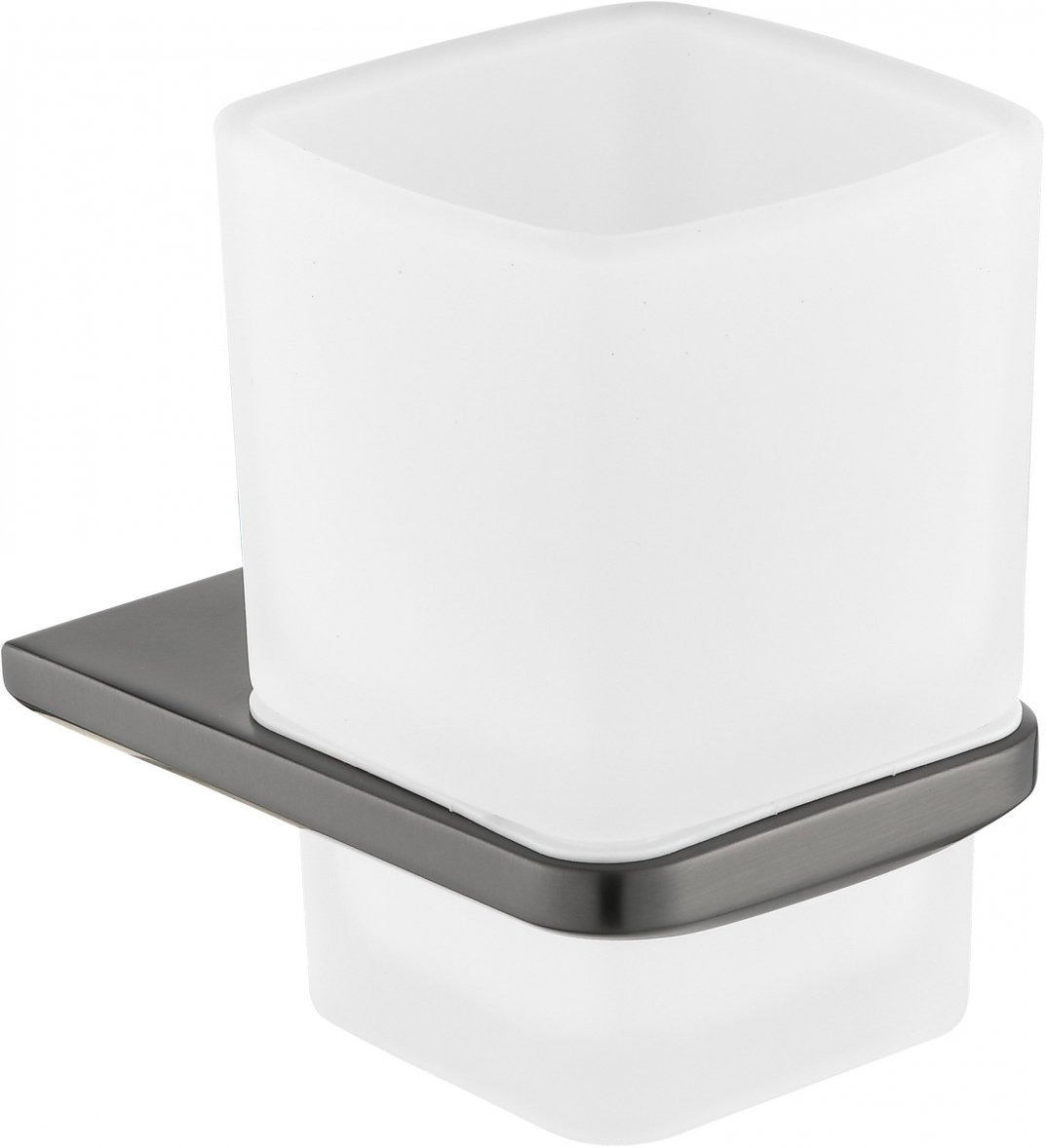 Стакан для зубных щеток Grocenberg AC0053BG, стекло, с настенным держателем, материал латунь, цвет графит.