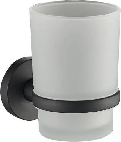 Стакан для зубных щеток Haiba HB8706 с настенным держателем, материал нержавеющая сталь/стекло, цвет чёрный матовый.