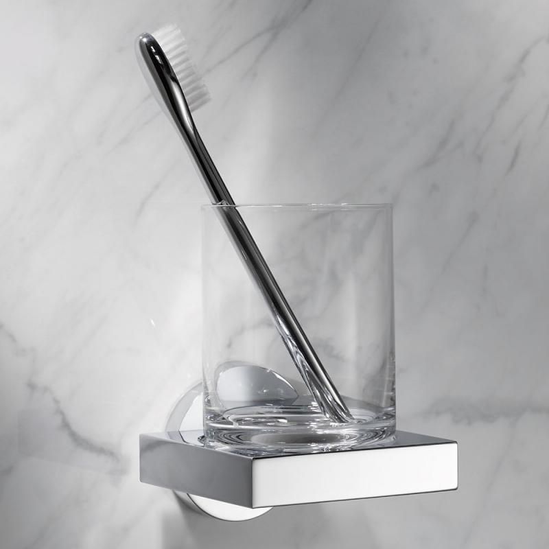 Стакан для зубных щеток Keuco Edition с настенным держателем, материал латунь/стекло, цвет хром.