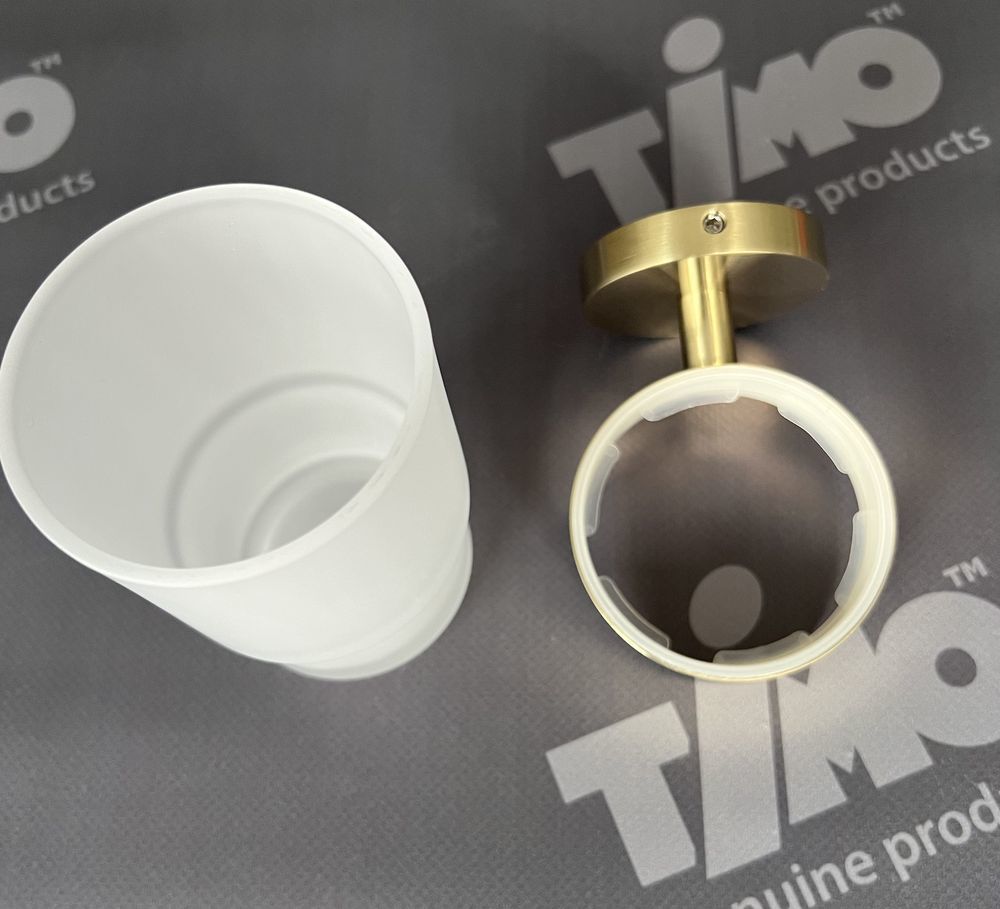 Стакан для зубных щеток Timo Saona 13031/17 с настенным держателем, материал латунь/стекло, цвет золото матовое.