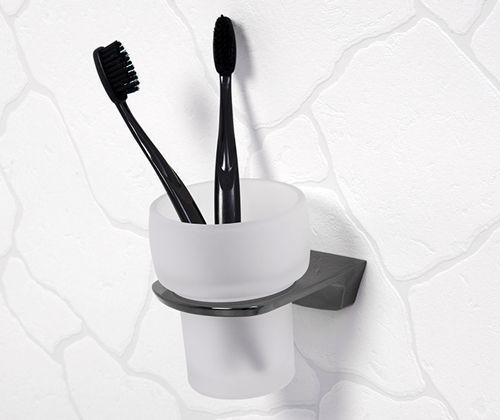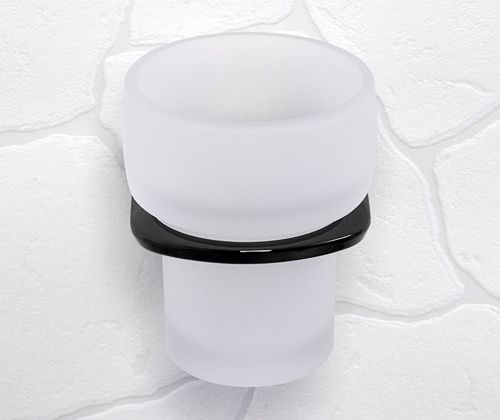 Стакан для зубных щеток WasserKraft Glan K-5128 с настенным держателем, материал металл/стекло матовое, цвет чёрный.