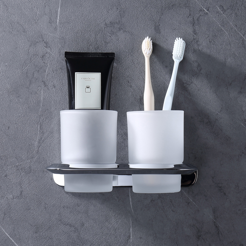 Стакан двойной для зубных щеток Abber Nord AA1557, с настенным держателем, материал нержавеющая сталь/стекло, цвет хром.