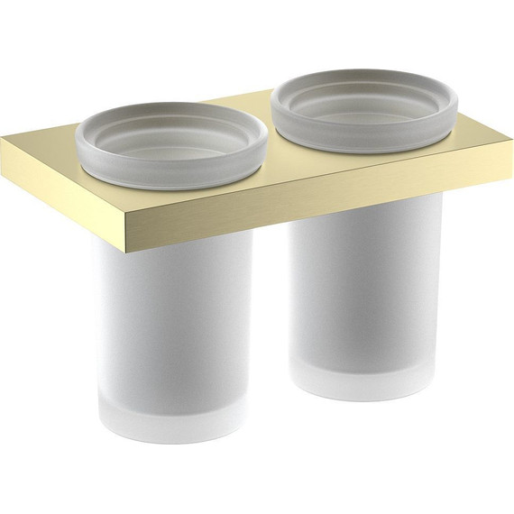 Стакан двойной для зубных щеток Timo Petruma 15234/17 с настенным держателем, материал латунь/стекло, цвет золото матовое.