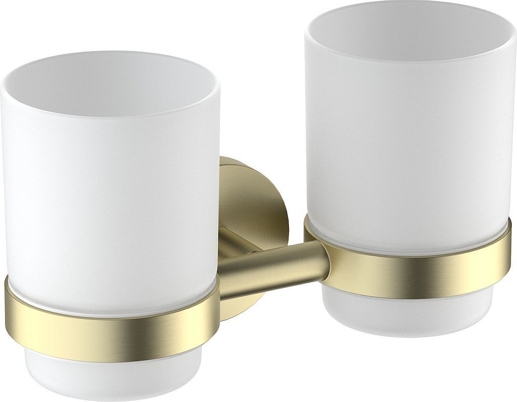 Стакан двойной для зубных щеток Timo Saona 13034/17 с настенным держателем, материал латунь/стекло, цвет золото матовое.