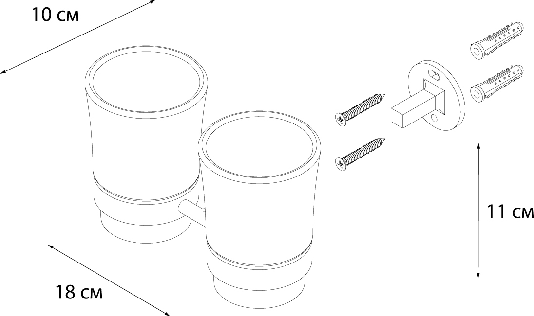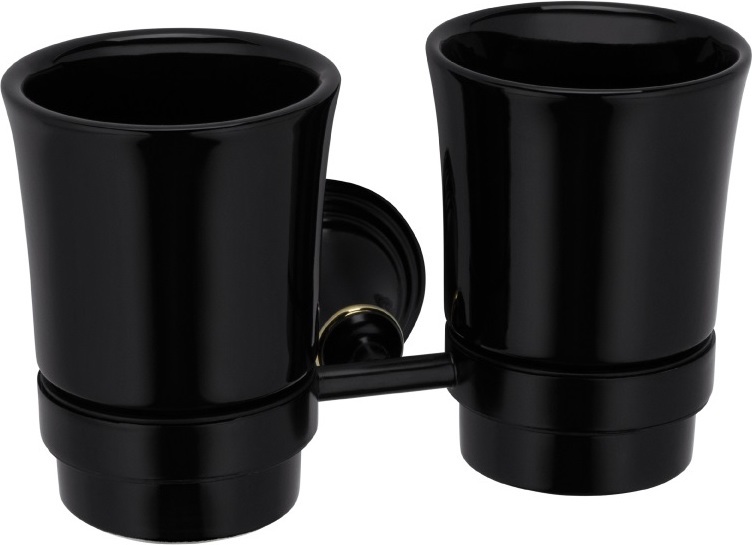 Стакан двойной Fixsen Luksor, керамика, с настенным держателем, материал латунь, цвет чёрный.