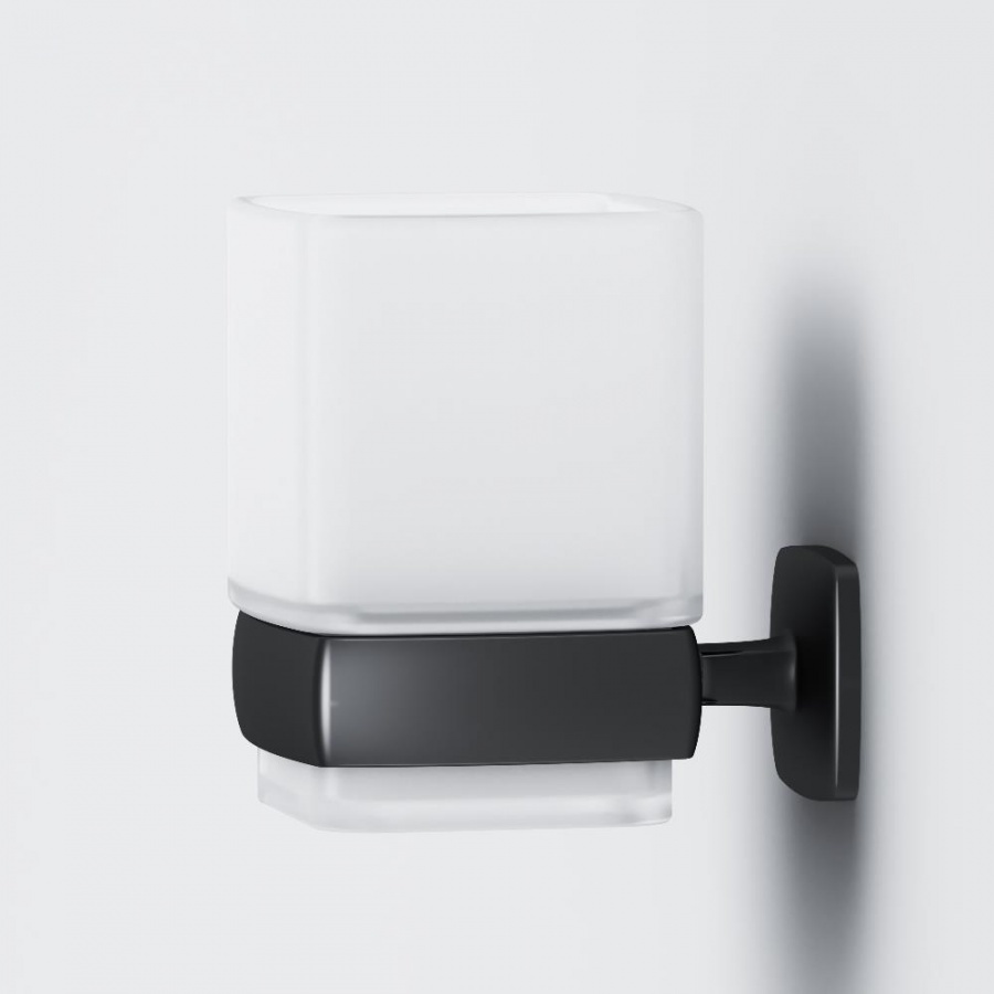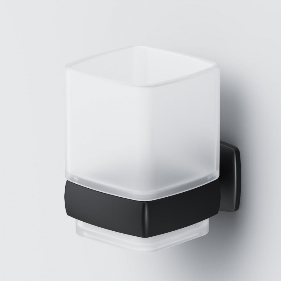 Стакан для зубных щеток AM.PM Gem A9034322 с настенным держателем, материал цинк/стекло, цвет чёрный.