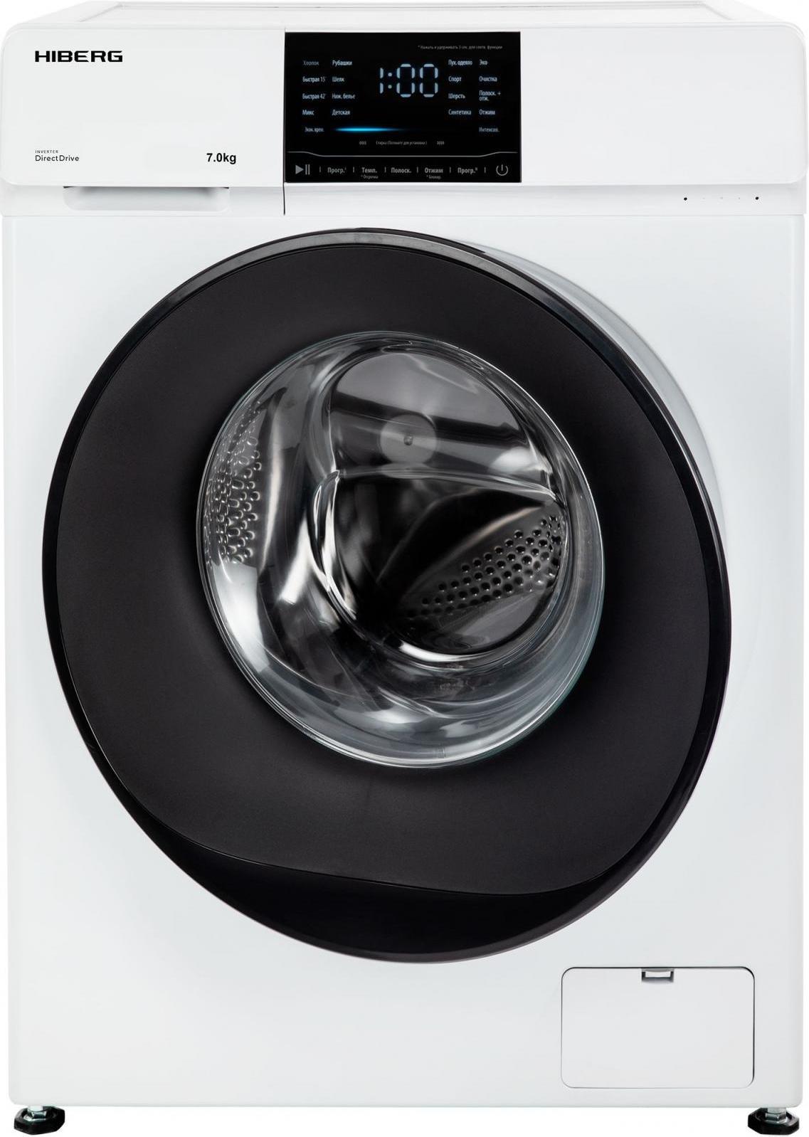 - Отдельностоящая стиральная машина HIBERG i-DDQ6 - 712 W с инверторным мотором и системой прямого привода отстирывает до 7 кг сухого белья за 1 цикл.