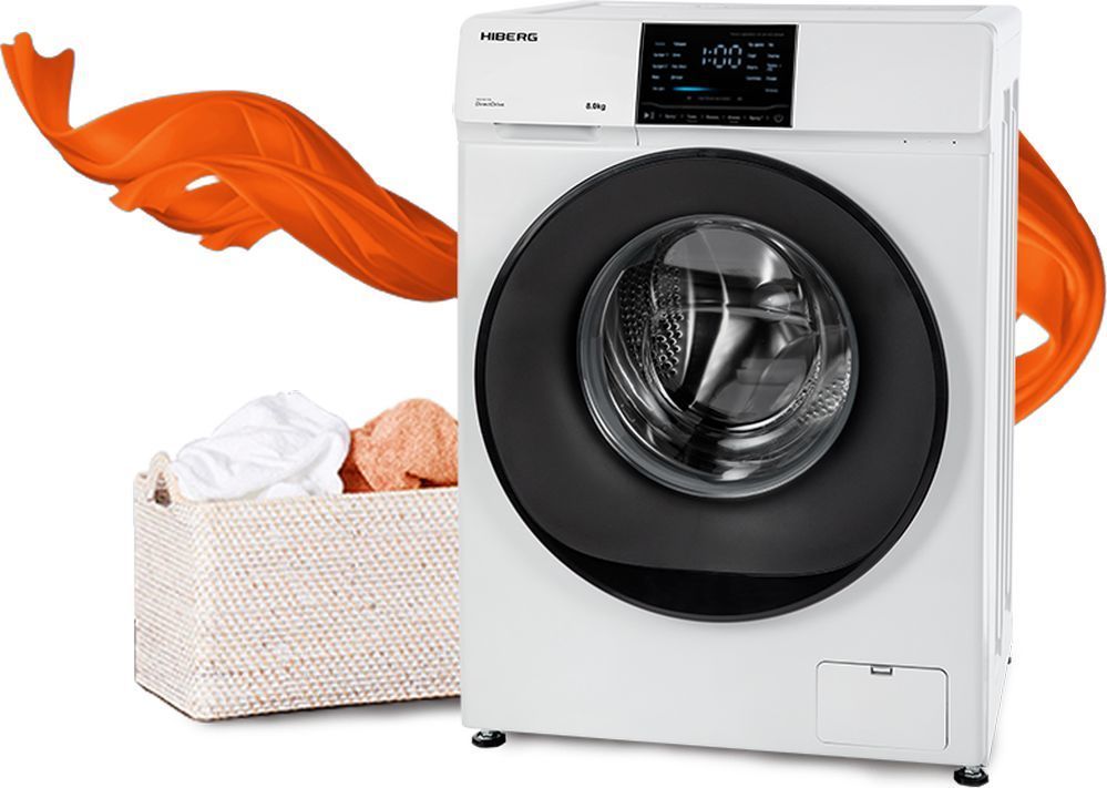 - Отдельностоящая стиральная машина HIBERG i-DDQ6 - 814 W с инверторным мотором и системой прямого привода отстирывает до 8 кг сухого белья за 1 цикл.