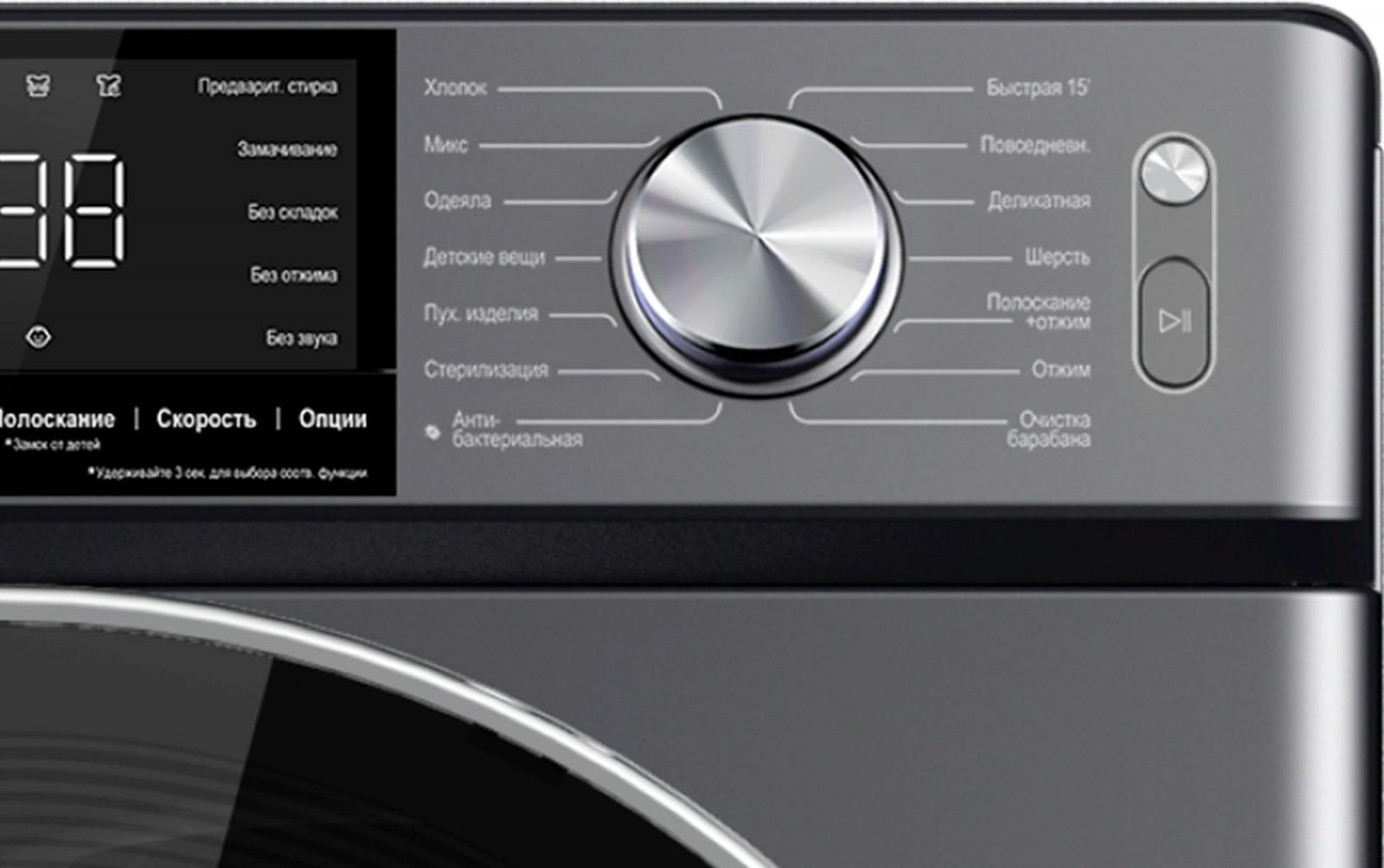 - Функция «Замок от детей» блокирует панель управления во время работы, тем самым защищая от случайного открытия дверцы и изменения настроек детьми.