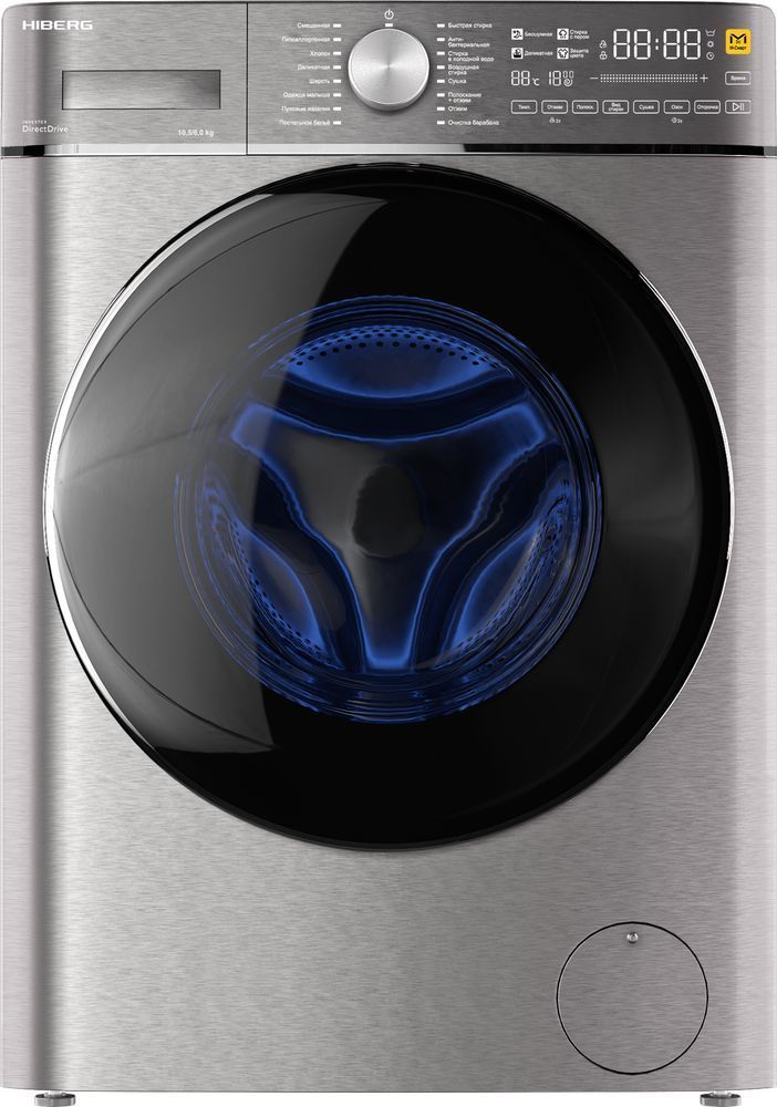 - Стиральная машина HIBERG i-DDQ8 - 10614 Ss с инверторным мотором и системой прямого привода отстирает до 10,5 кг белья за цикл стирки.